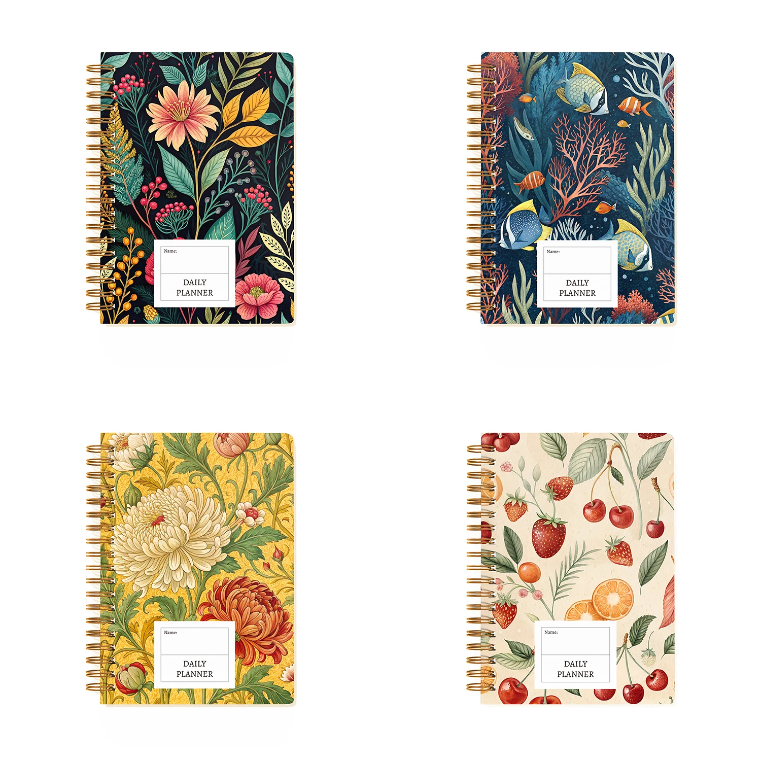 Premium A5 Daily Planner with Monthly Tabs Flower Patterned Wire Bound and Spiral Bound Sewing Binding for Business