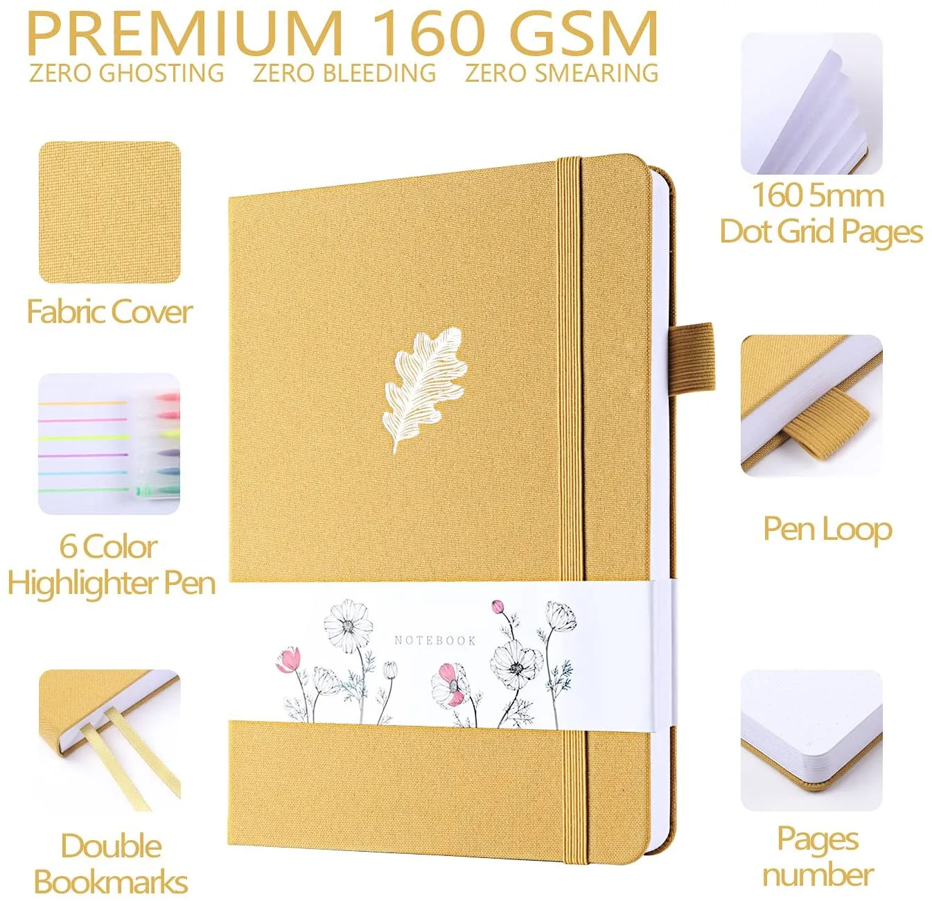 Promotional Stamping Silver Custom Design Hardcover Linen Fabric A5 Dotted Inner Page Pocket Notebook Custom Journal Notebook