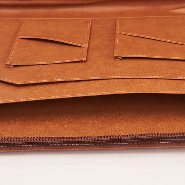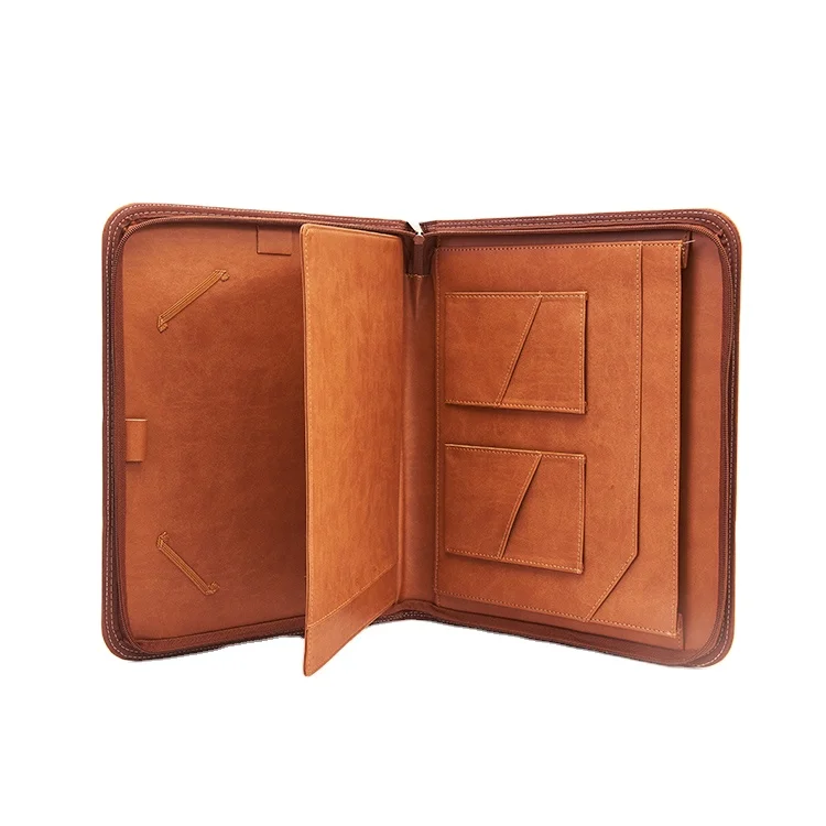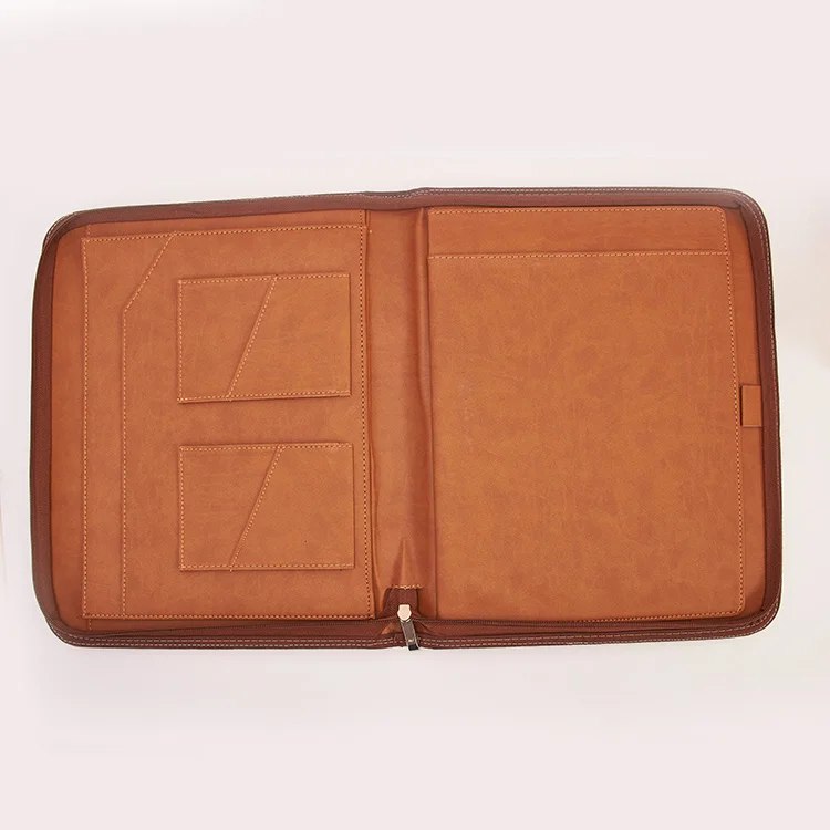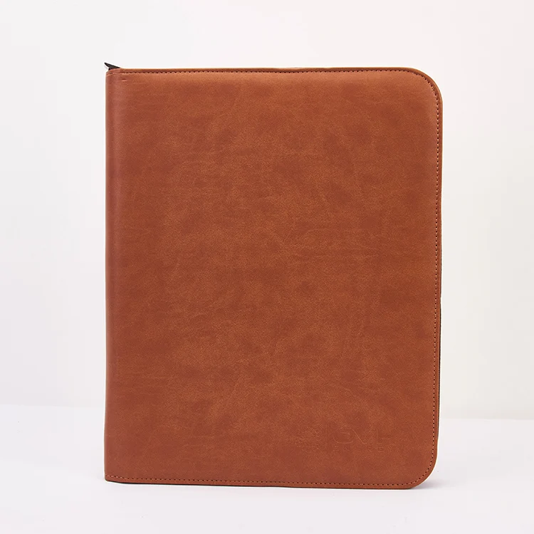 Hot Sale A4 File Folder Leather Cover Logo Embossed Zipper Pocket Customizable Ring Binder School Document Use A5 Size Available