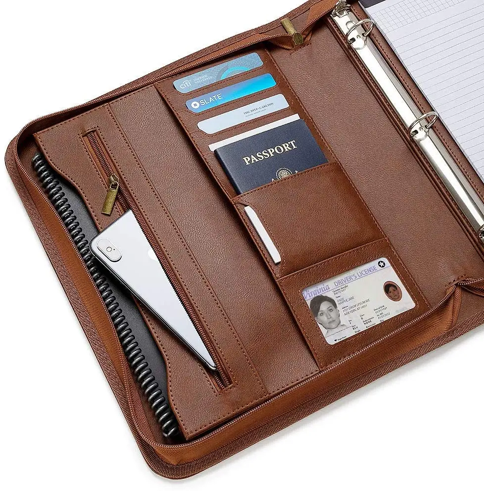 A4 Size Pu Leather Certificate Holder Folder Portfolio Padfolio With Zippered Closure and Ring Binder
