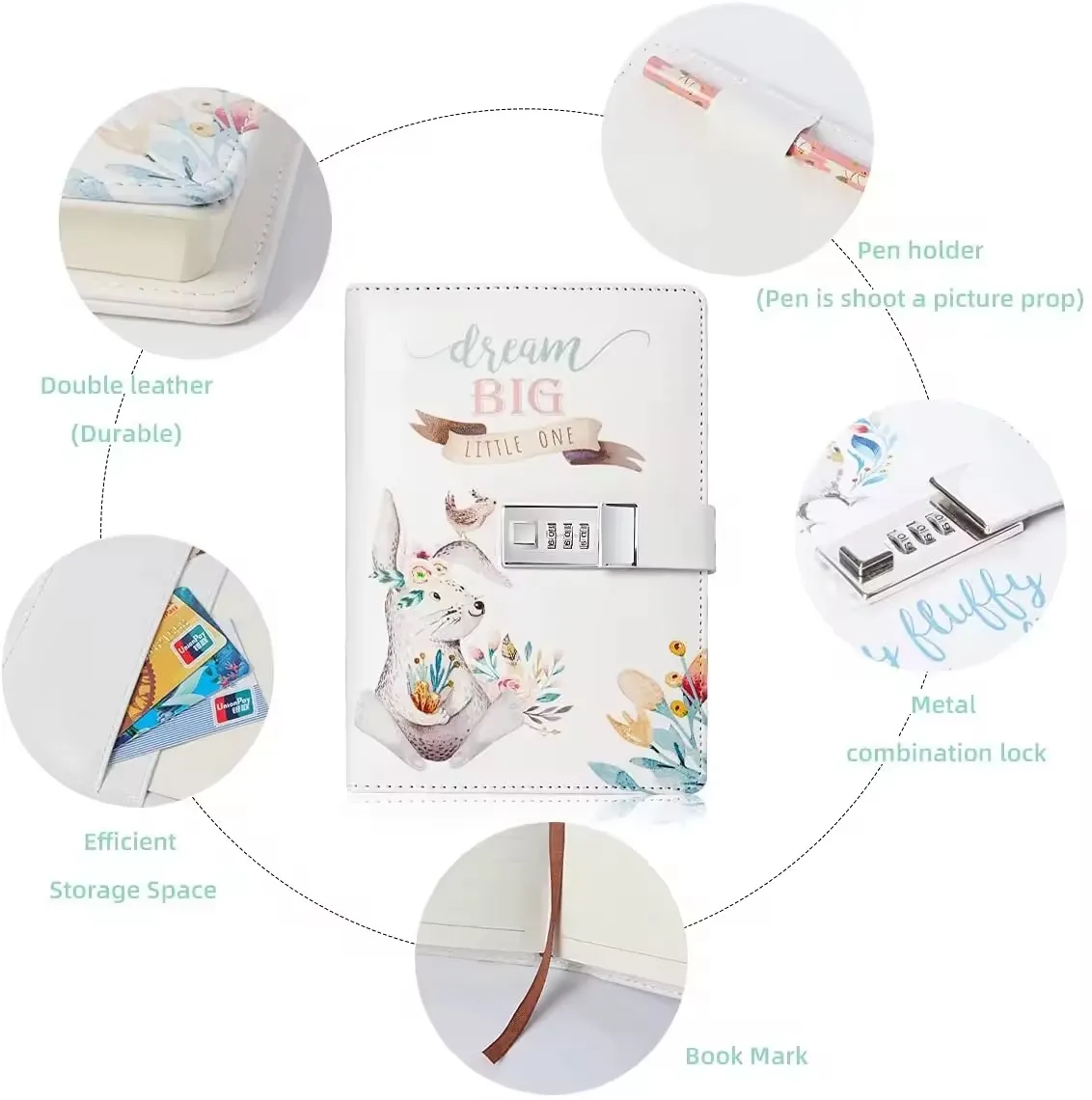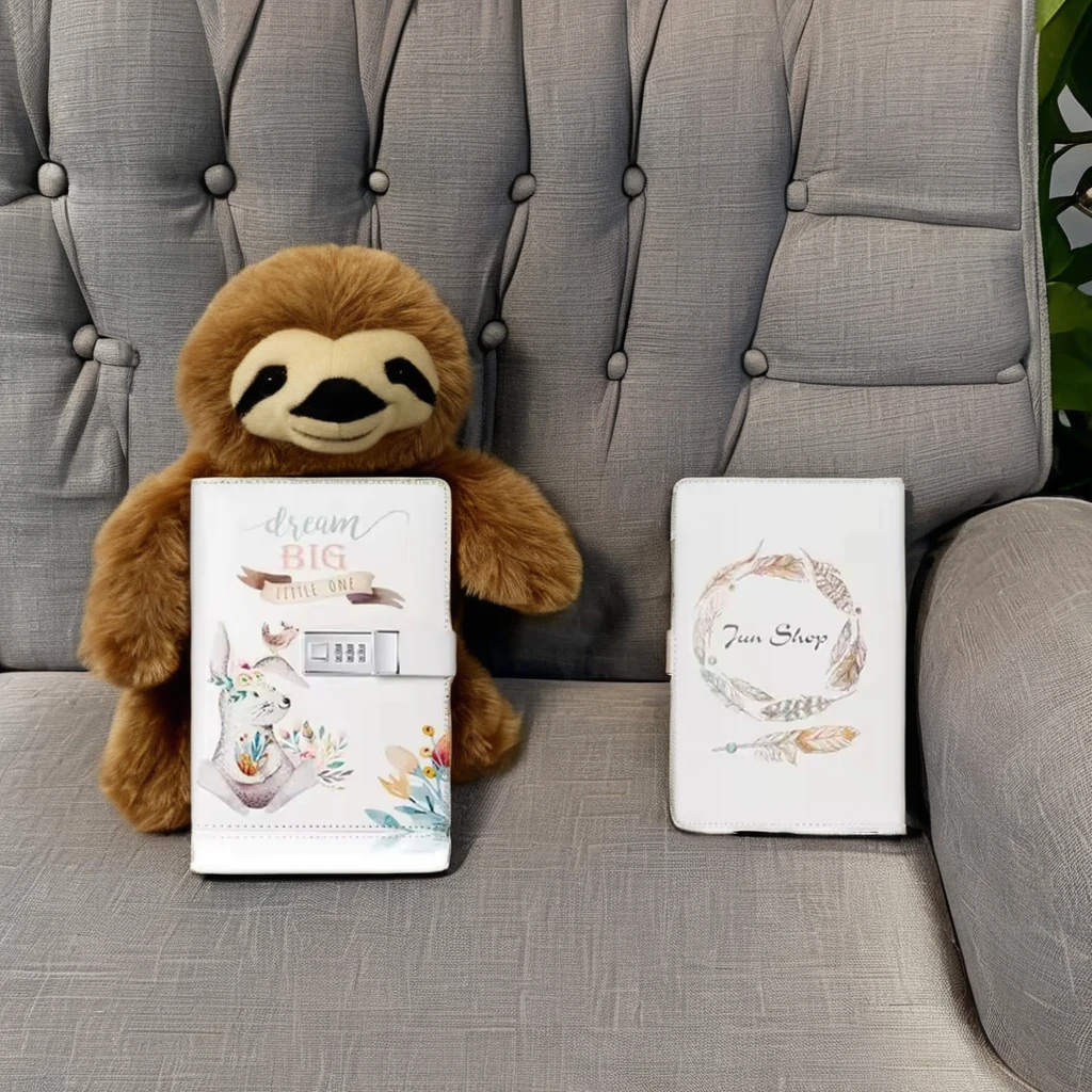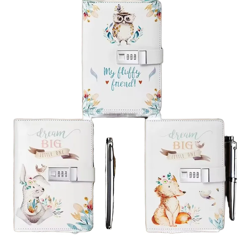 Hot Sale Cute Animal Design PU Leather Case Bound Lined Page Loose-leaf Binding Diary Notebook with Password Lock