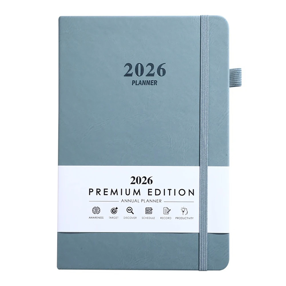 Premium A5/A6 Size Daily Planner Monthly Tabs Custom Logo PU Leather Notebook with Dated Pages for Business Use