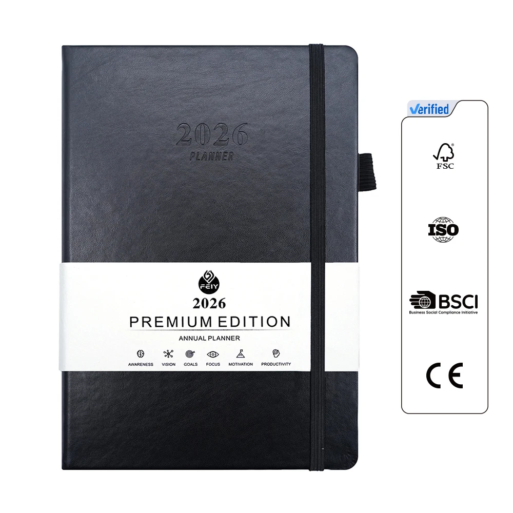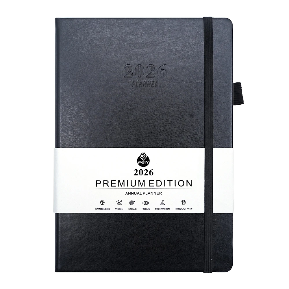 Premium Quality A6 Daily Planner PU Leather Cover Full Year Organization System 100 Sheets Custom Logo Option Saddle Stitching