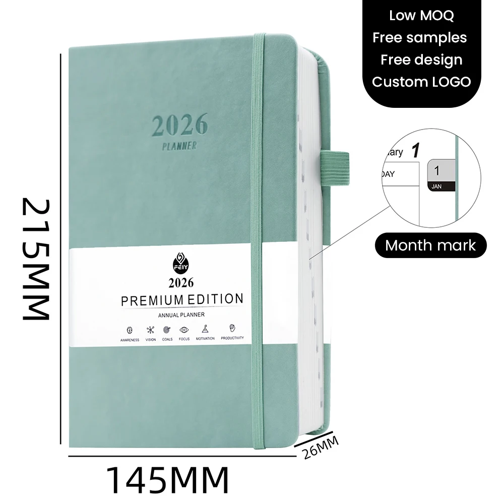 Professional Daily Planner PU Cover Dated Pages A4 A5 Size Full Year Schedule with Monthly Index Business Organizer