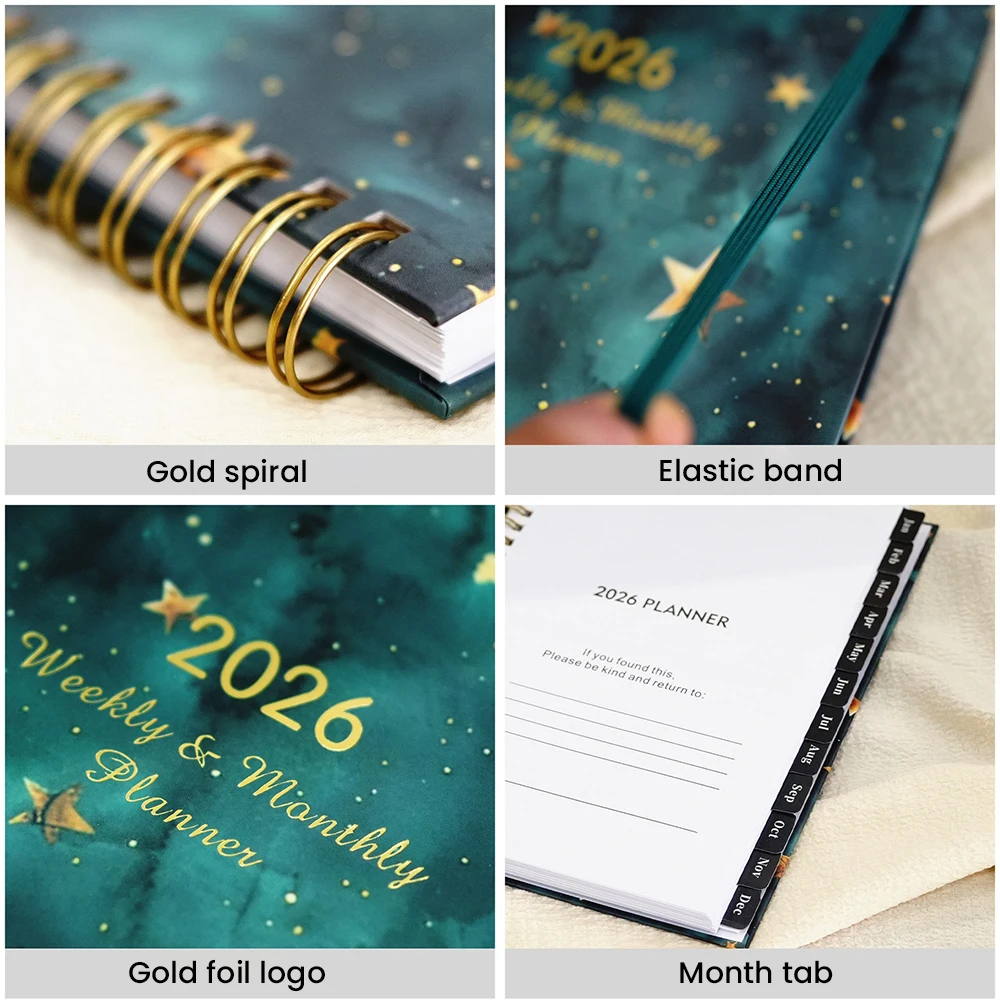 2026 A5 Spiral Binder Hardcover Notebook Personalized Printed Weekly & Monthly Planner New Year Gift with Paper Tab Divider