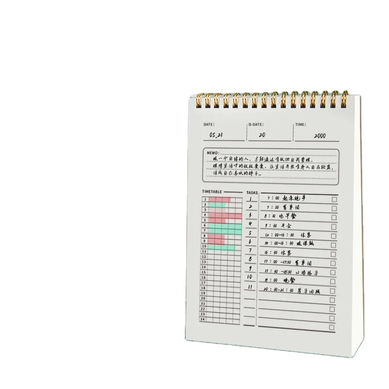 Custom A6 Students' Monthly Yearly Planner 100 Days Timetable Notes Cheap Spiral Bound Day Planner with PP Cover Thread Sewing