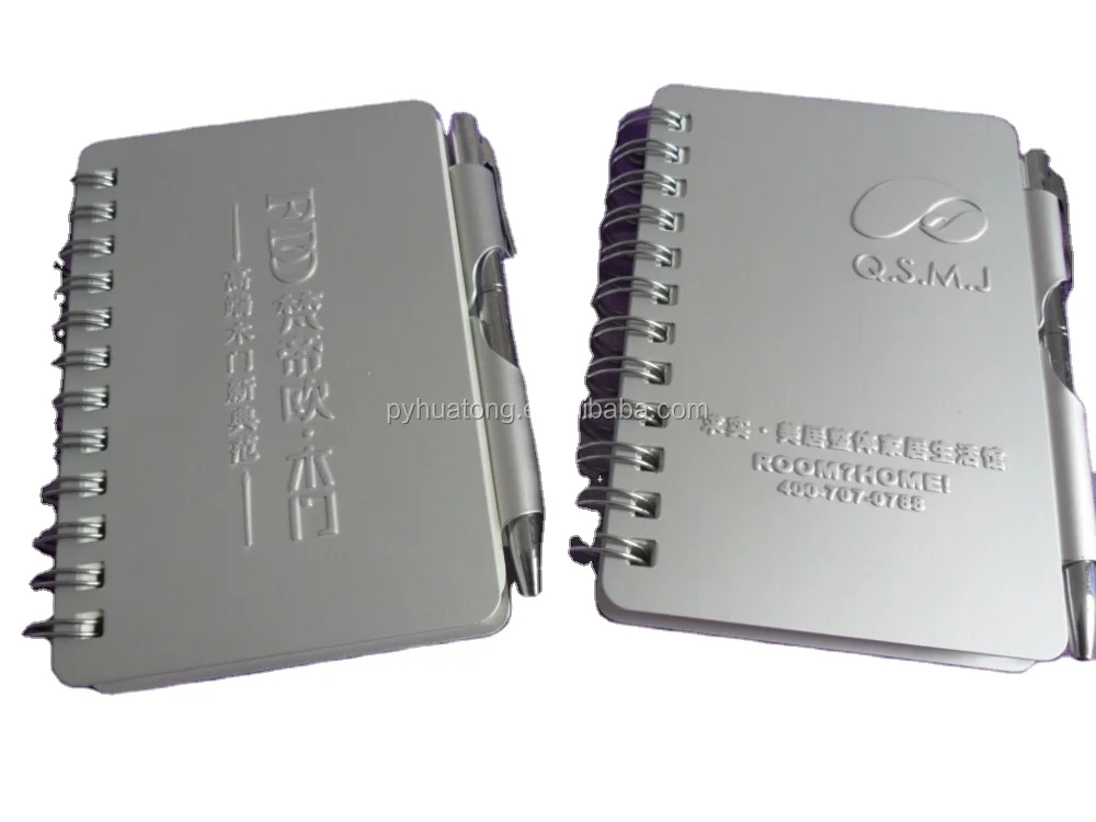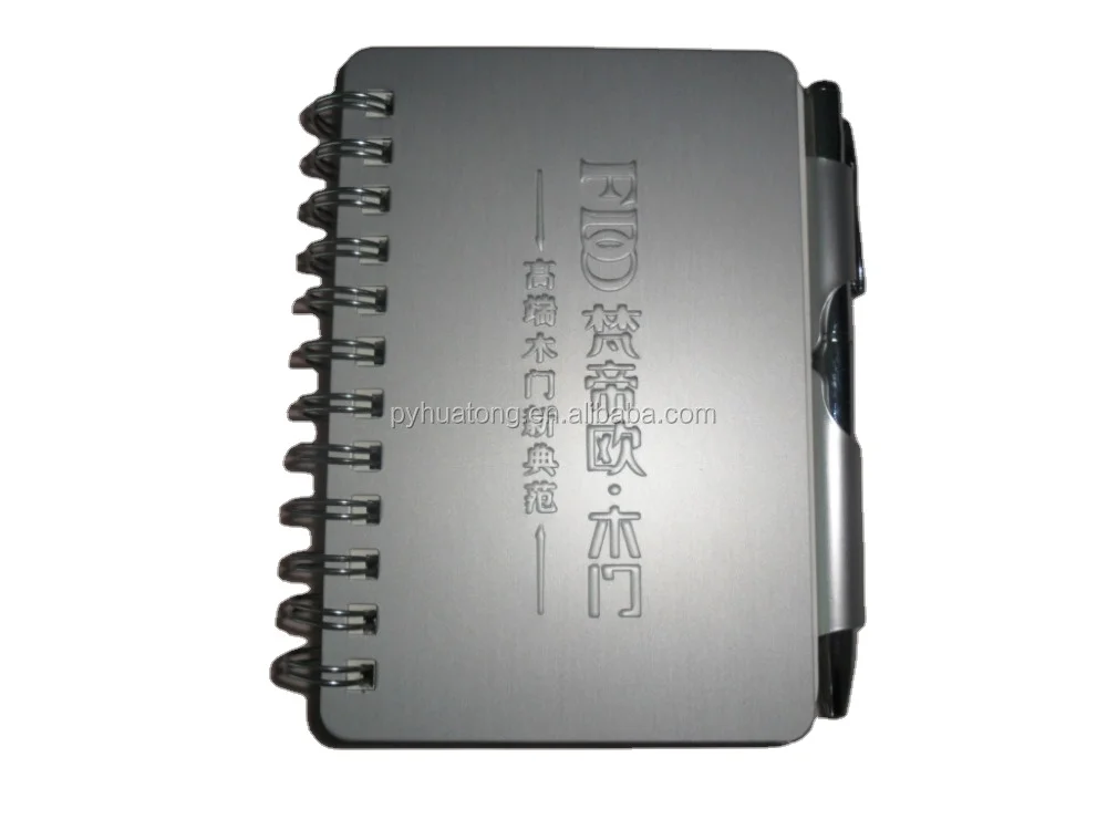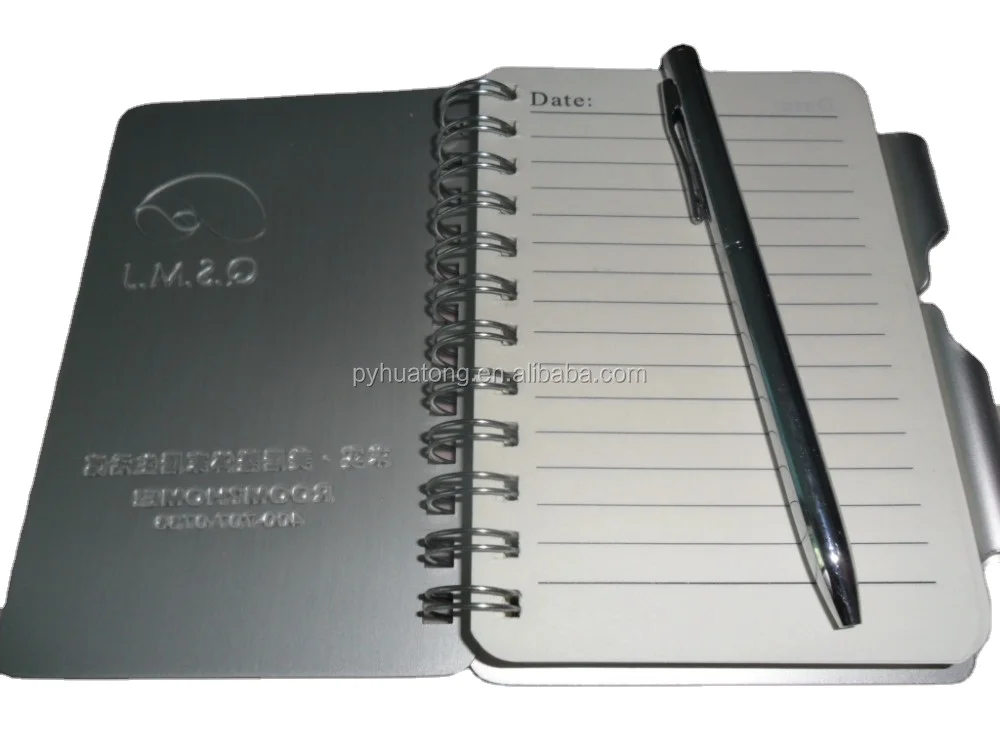 Custom Logo A6 A7 Size Aluminum Notepad With Mini Pocket Spiral Bound Metal Cover Office Style Box Packed-for Gifts Promotion