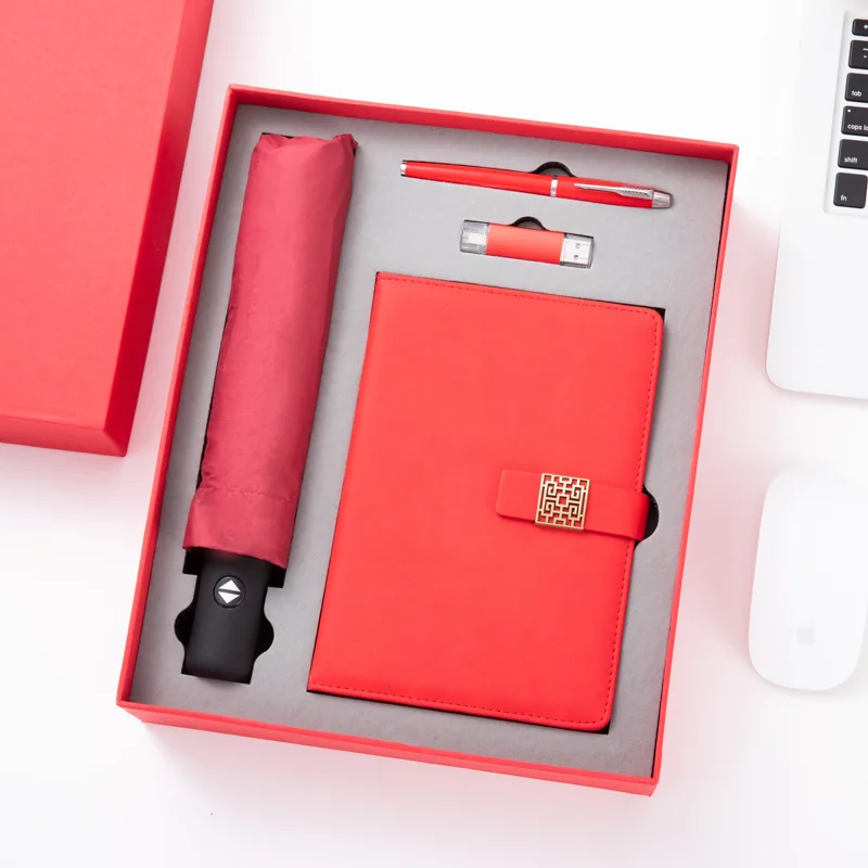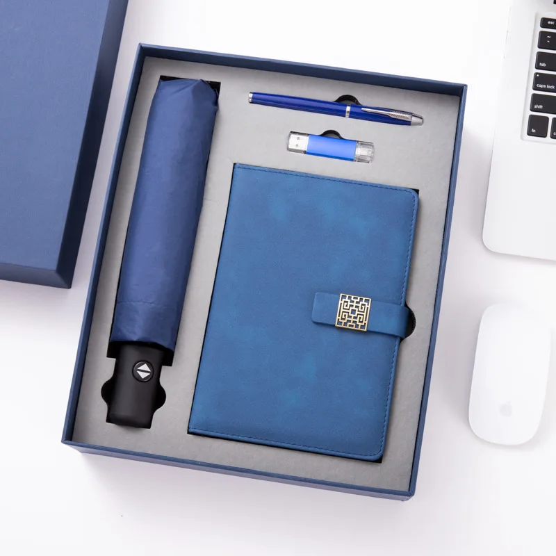 Corporate Gifts Souvenir for Guests Custom logo Notebook Diary with Pen and Customize Umbrella and USB Sets