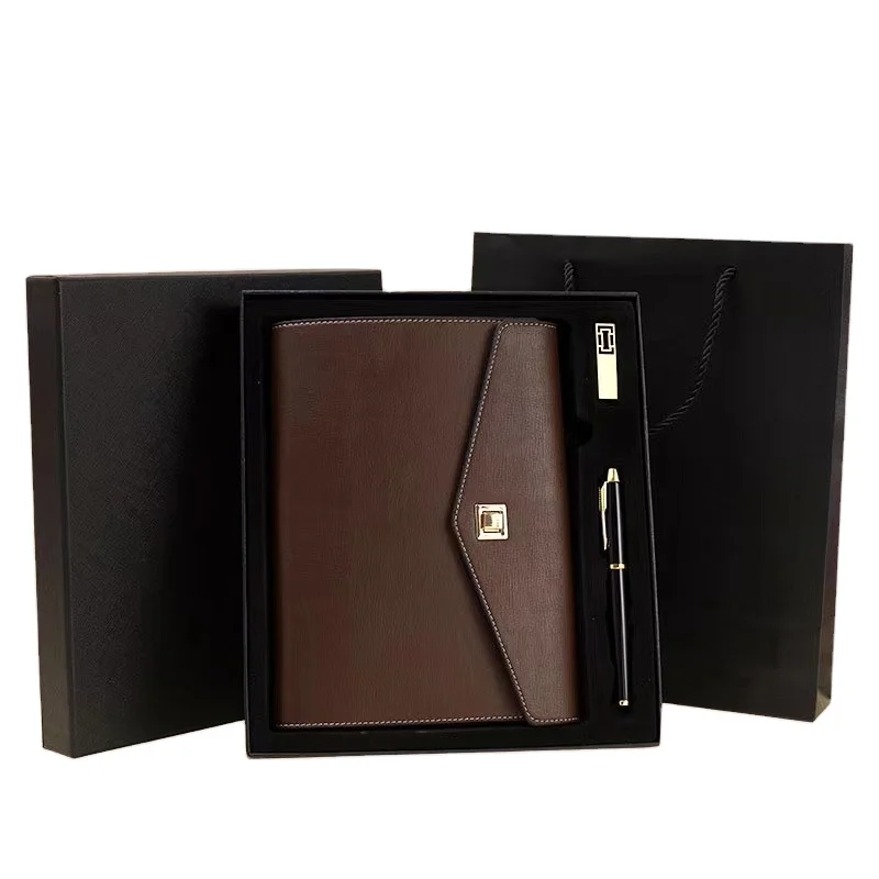 Custom Luxury Business Office Notebooks Set Refillable PU Leather Magnetic Diary with Pen Spiral Ring Bound Journal Gift Box Set