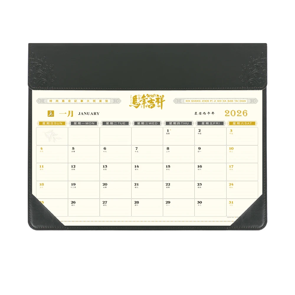 2026 Vegan PU Leather Desk Pad Calendar Custom Monthly and Weekly Views Quick Ship Vegan PU Leather Desk Mat In-Stock