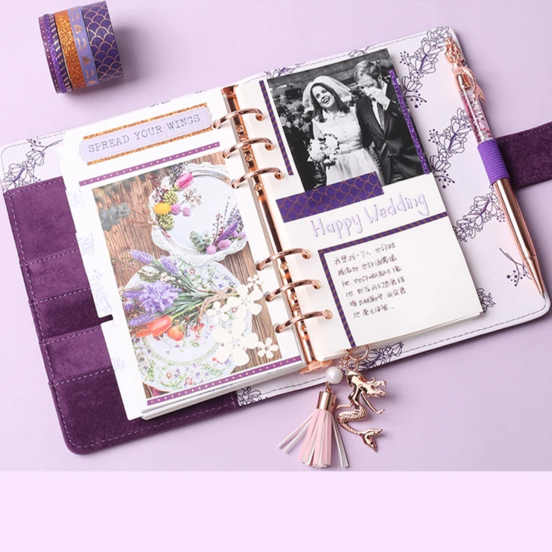 Custom Logo A5 A6 PU Leather Notebook 6-Ring Spiral Binder With Hard Cover for Promotional Work Agenda Business Gift