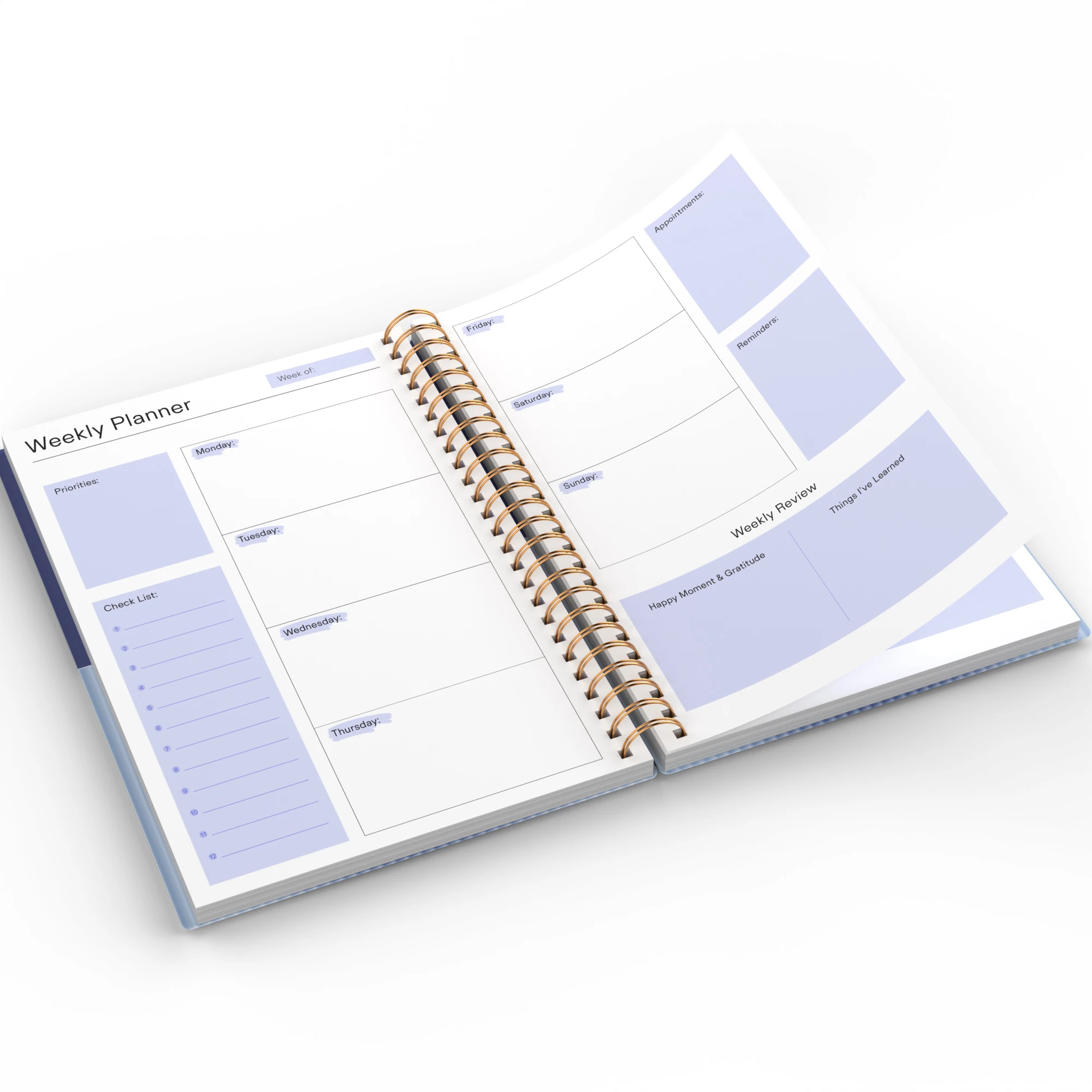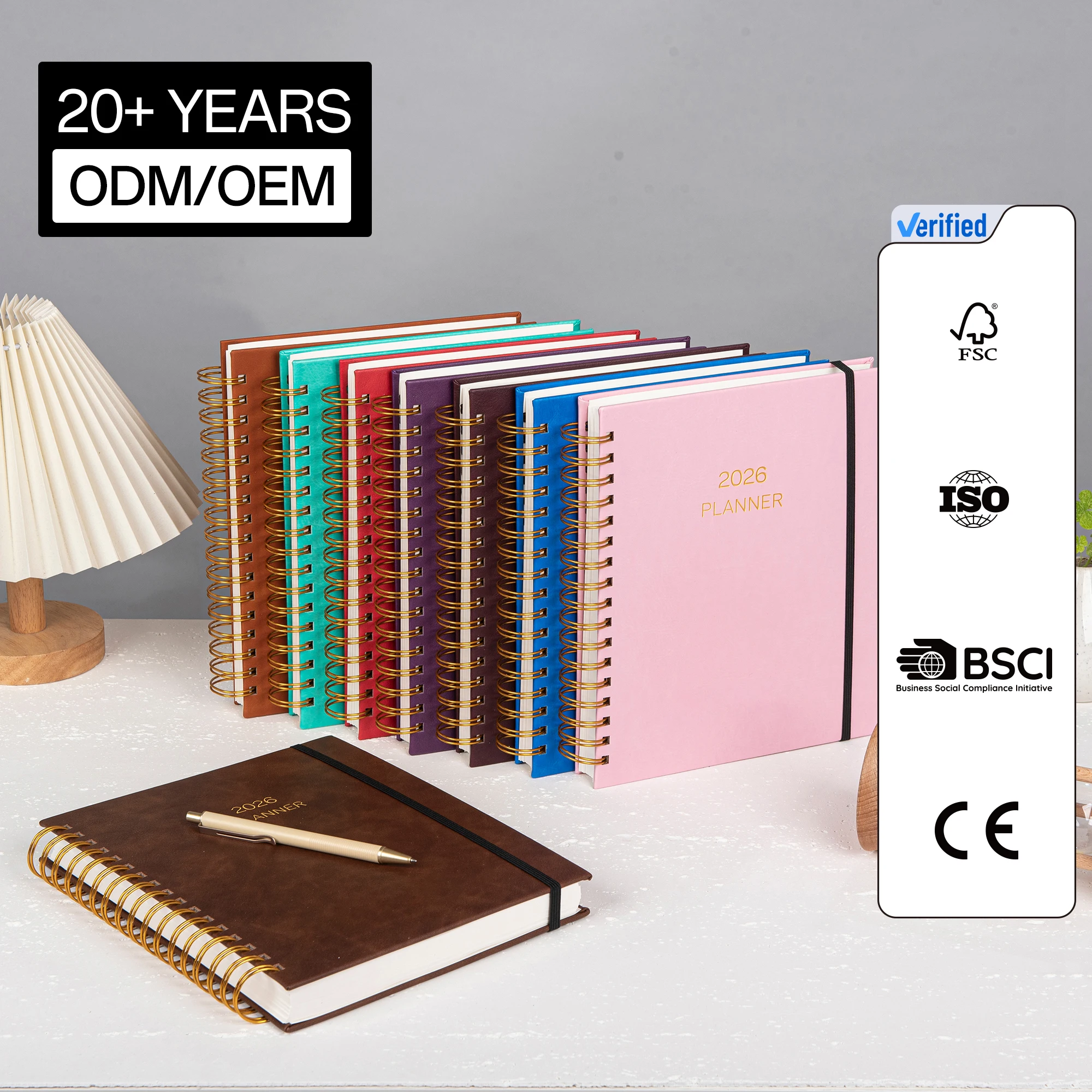 HUATONG Custom Branding Option A5 A4 B5 Size Spiral Notebook Full Year Planner Hardcover Business Style Paper Cover 80 Sheets