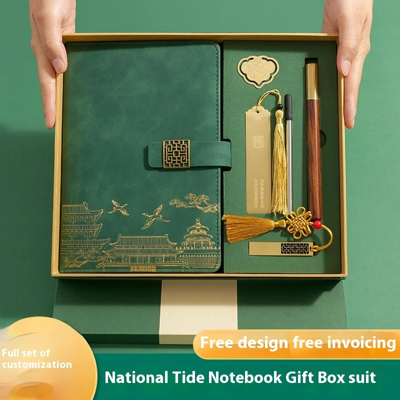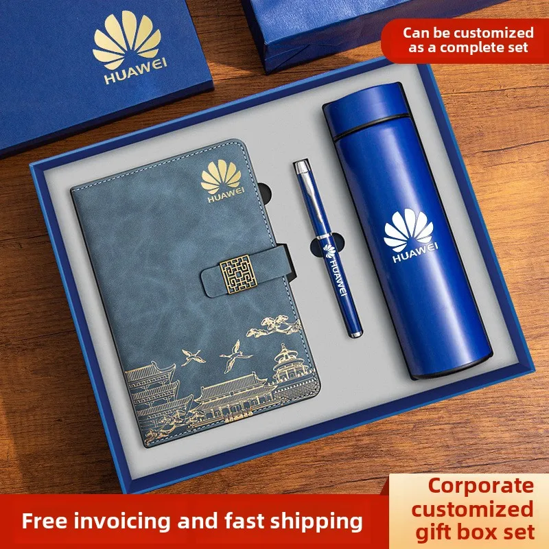 Custom Logo A5 Notepad Set Business Notebook Thermos Cup Gift Box National Trend Hardcover Leather Meeting Minutes Souvenir A3
