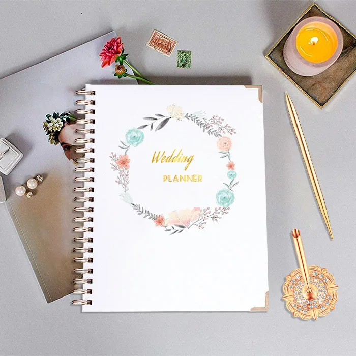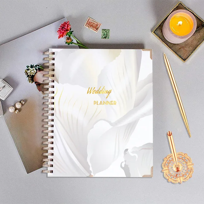 Wholesale Marble Gold Undated Bridal Planning Diary Organizer Hard Cover Pockets Notebook