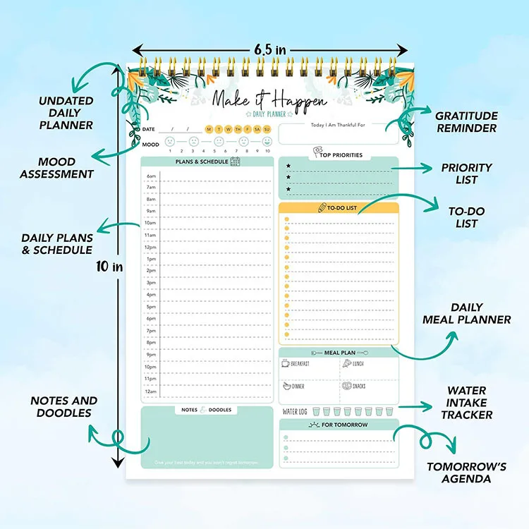 New Arrival A5 Custom Happy to Do List Notepad Journal Organizer Agenda Notebook 60 Days Yearly Notebook Weekly