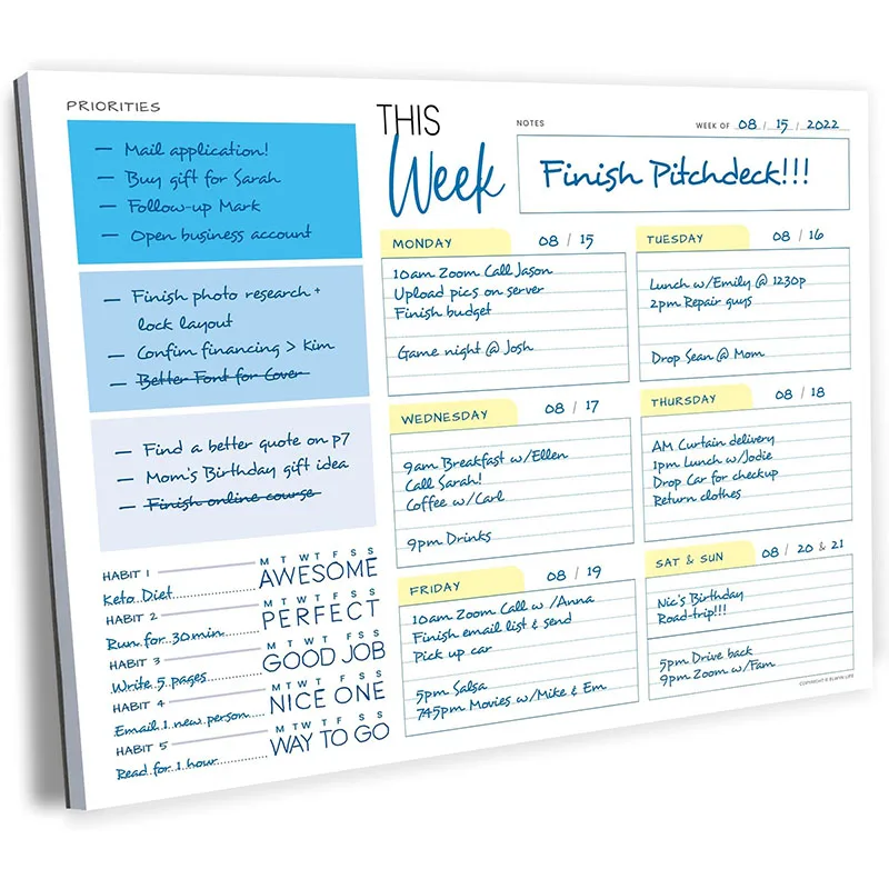 New Arrival Custom to Do List Notepad Journal Organizer Agenda Notebook 52 Weeks Yearly Notebook Weekly