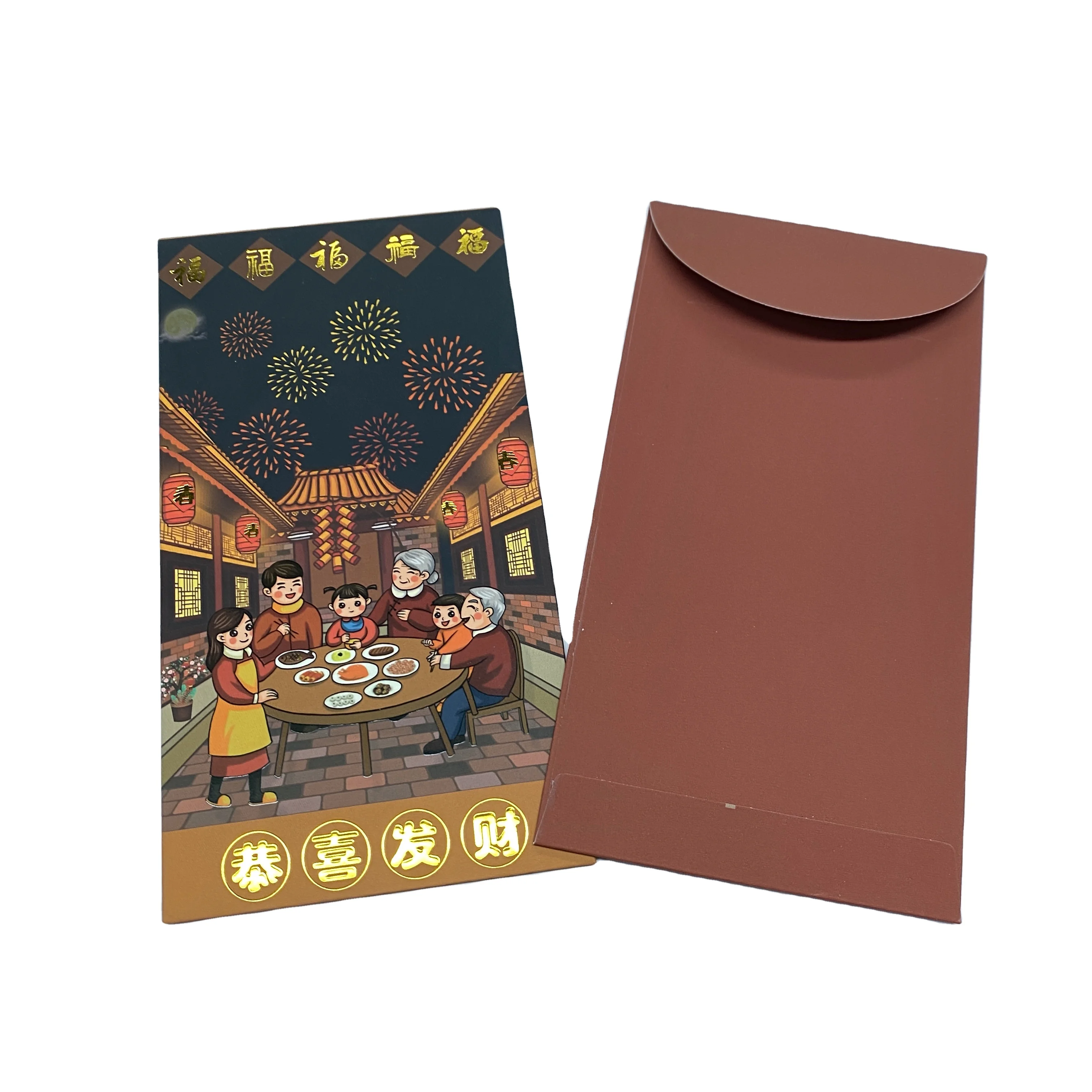 Chinese Happy Lunar New Year Paper Bag Foldable Red Packet Packaging Red Envelopes With Gold