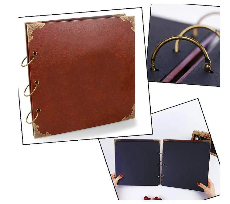 Wholesale Custom Leather Hardcover Scrapbook Baby Photo Album Rings DIY Blank Photo Album Wedding Scrapbook for FBA