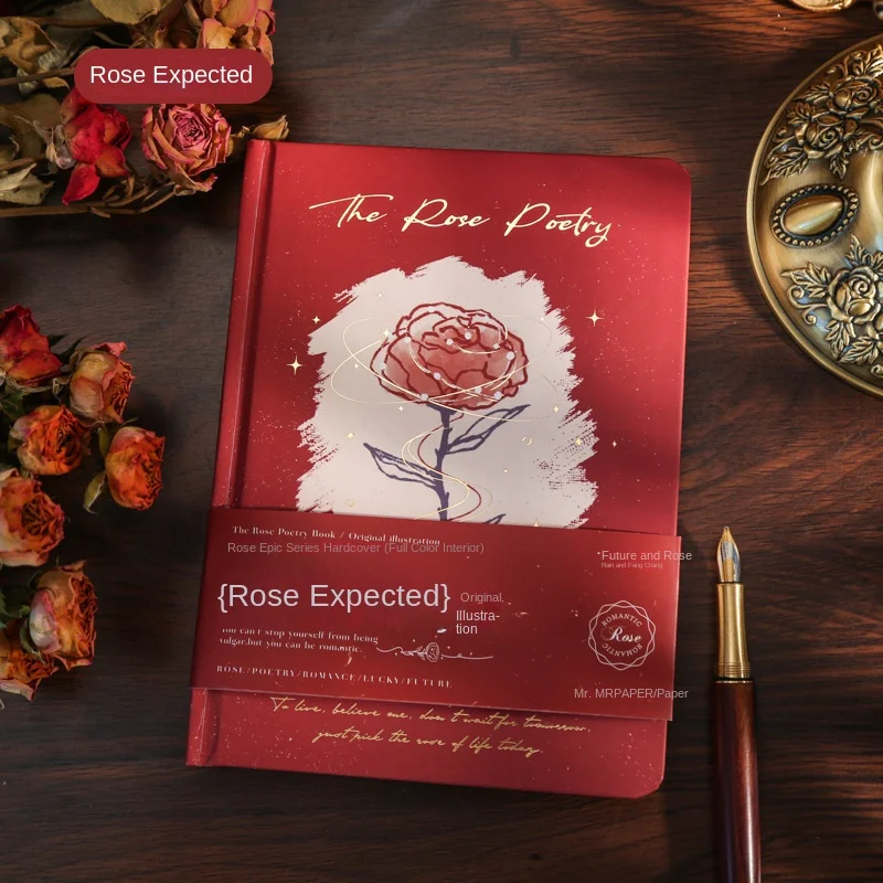 Mr. Paper Rose Epic Series Hard-Faced Hardcover Handbook A5/A6 Business Notebook Hand-Painted Rose Illustration Leather/PU