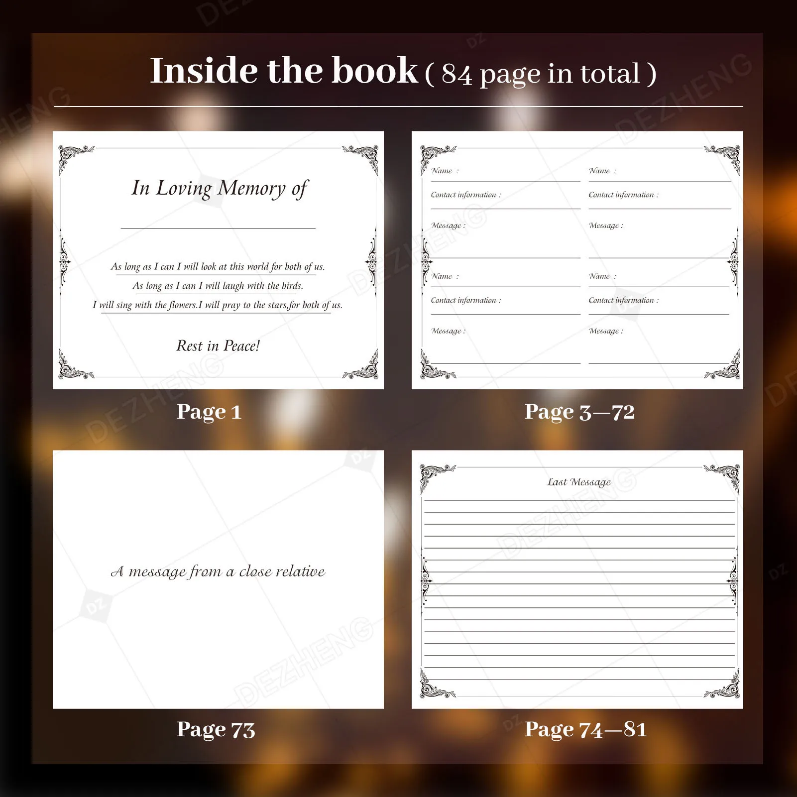 Custom Funeral Guest Book with Picture and Pen Celebration of Life Memorial Service Journal Paper Cover