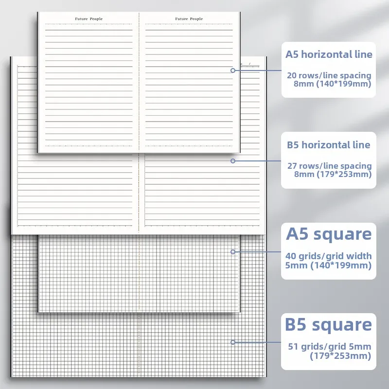 Wholesale Thickened Brown Packing Paper Stitching Casual Diary Notepad Notebook A3 Hardcover With Square Grids & Horizontal Line