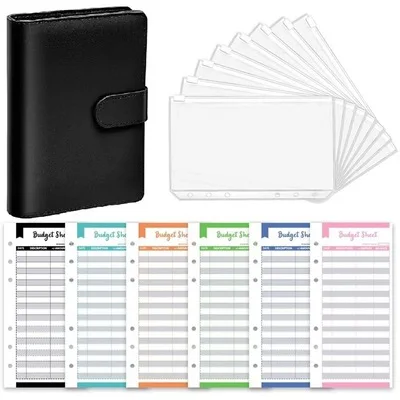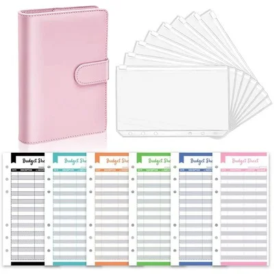 A6 Pink PU Leather Binder Cover with 6 Ring Binder Pockets Loose-leaf Cash Budget Envelopes System and Binder Bags