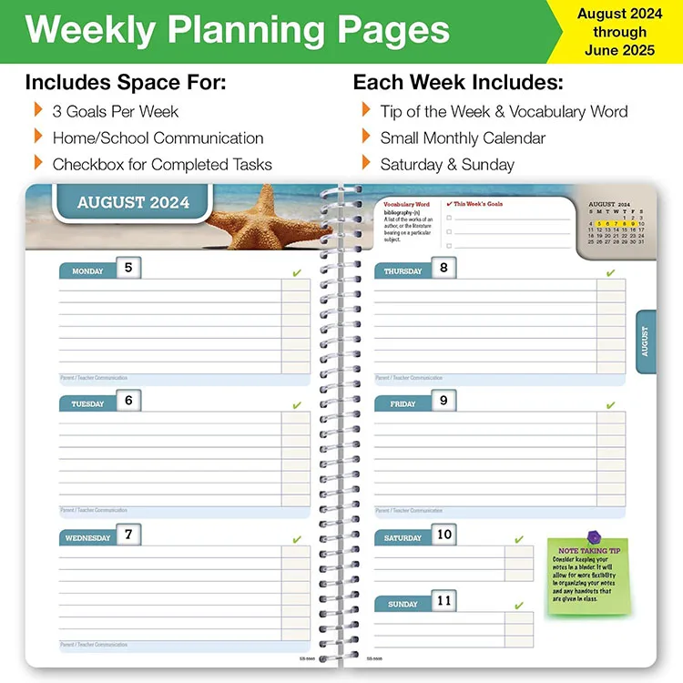 New Arrival Custom Notebook Journal Spiral Task Checklist Agenda Calendar Monthly Daily Special Date Schedules School Teacher