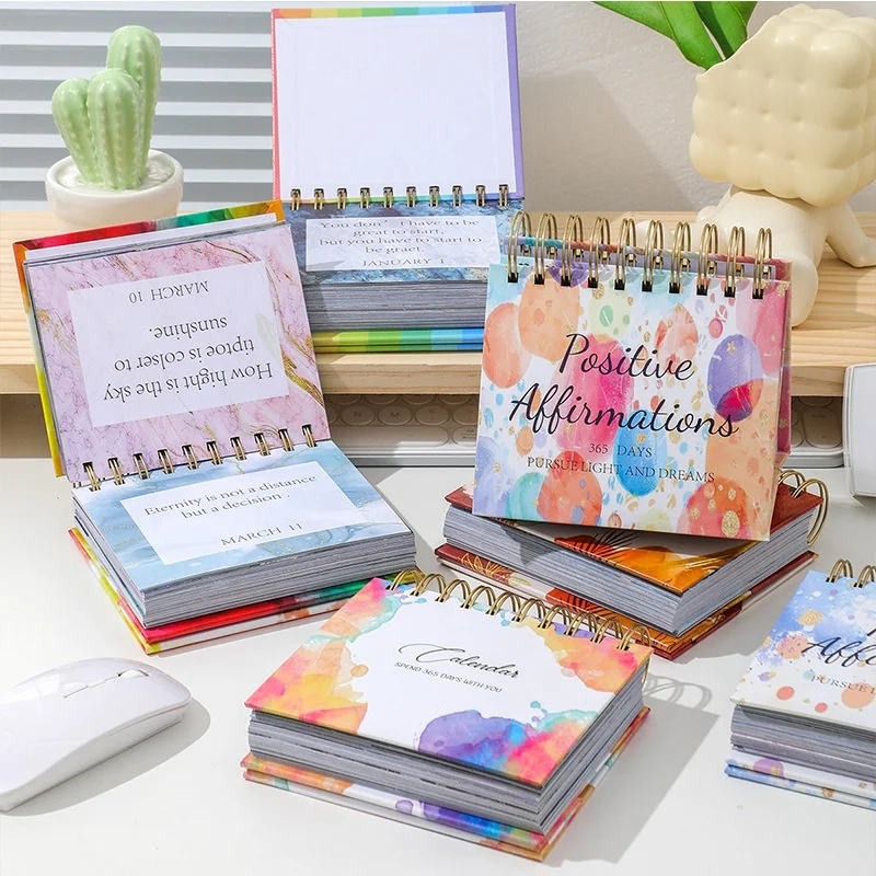 2026 Creative Inspirational 365-Day Paper Desk Calendar Cross-Border English Desktop Ornaments with Clock for Foreign Trade