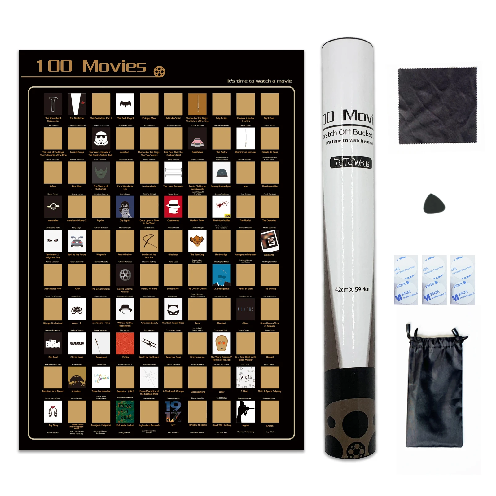 Wholesale Custom Printed 100 Horrible Movies Bucket List Scratch Tool Easy Foil Guide Posters on Cardboard