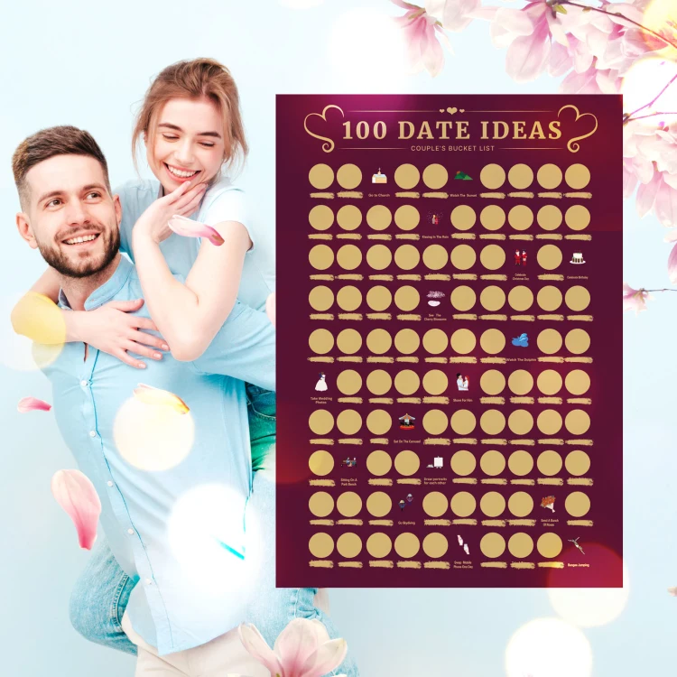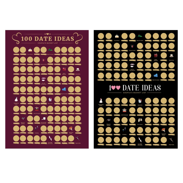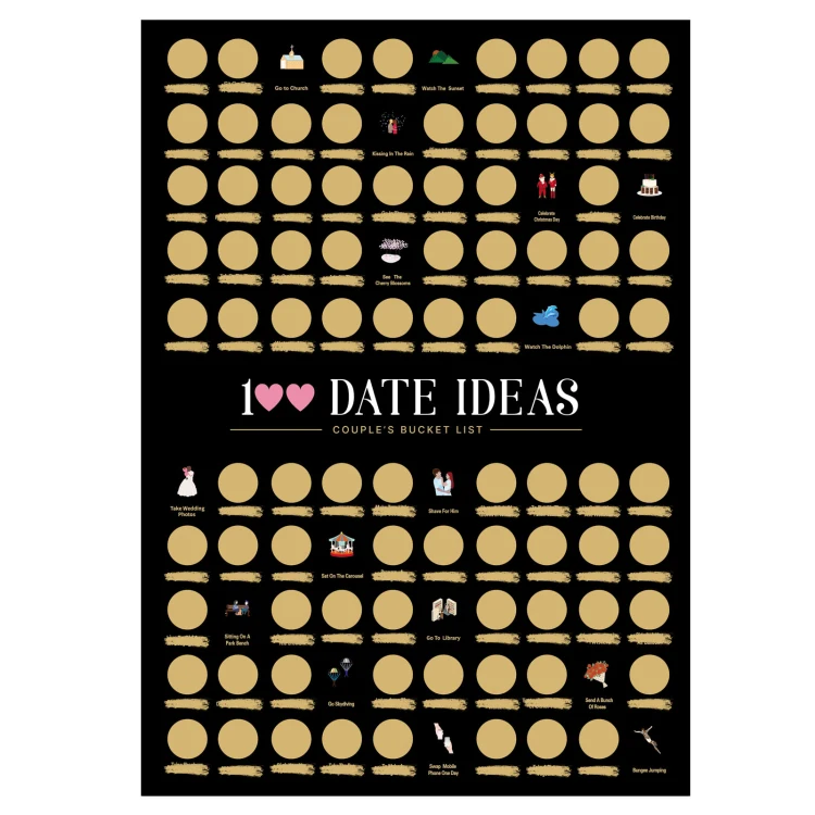 Hot Sale 100 Dates Scratch off Poster Wedding Gift for Couples Bucket List Couple Game Made of High Quality Offset Paper