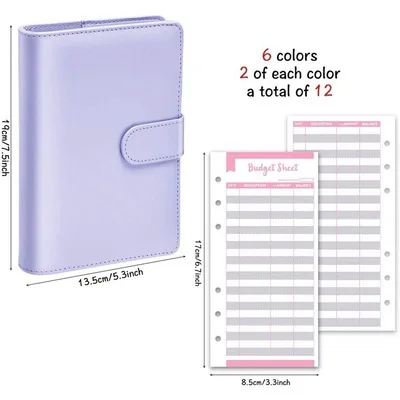 12PCS Budgeting Planner Organizer with A6 PU Leather Binder Loose-leaf Cover Paper Material for Cash Envelopes Expense Sheets