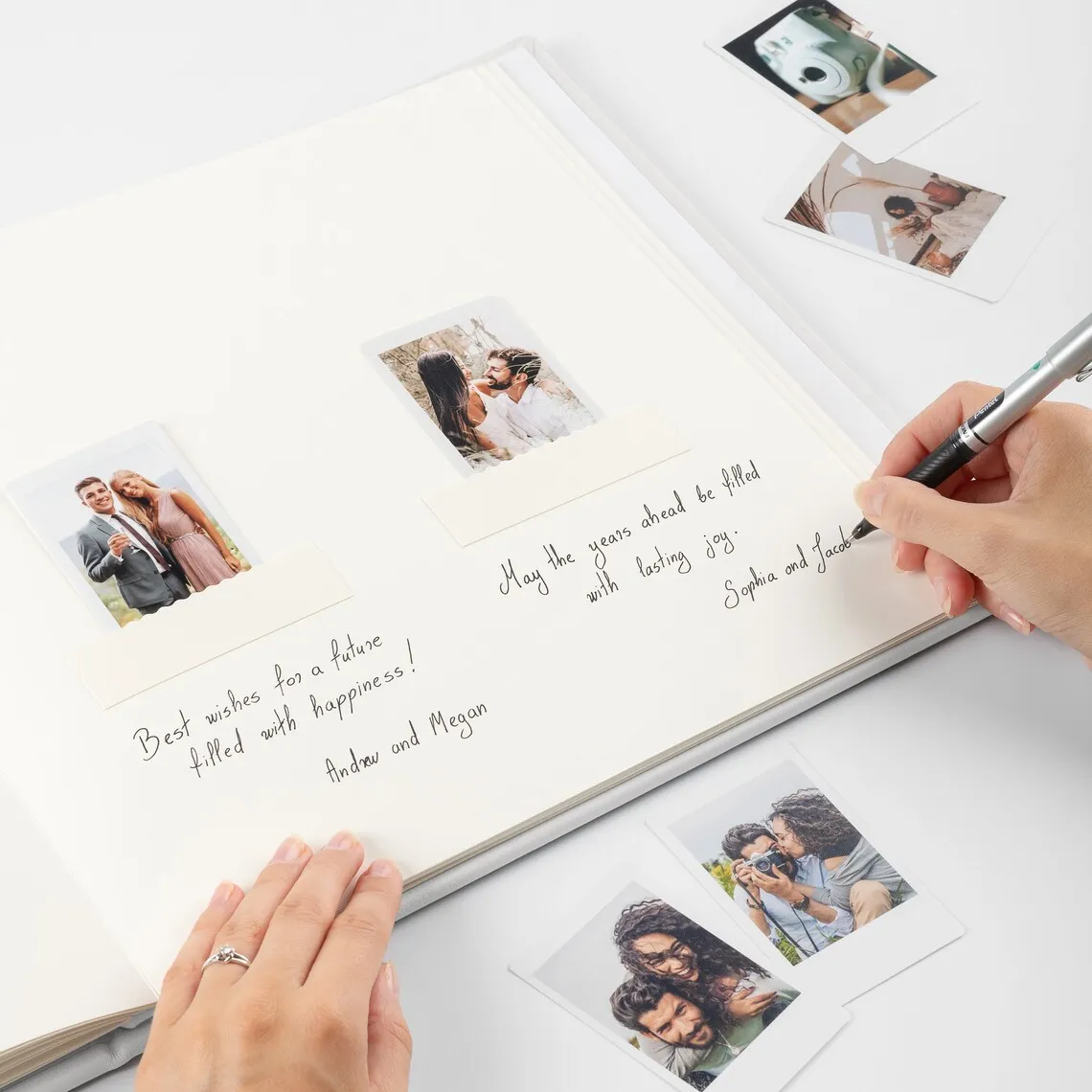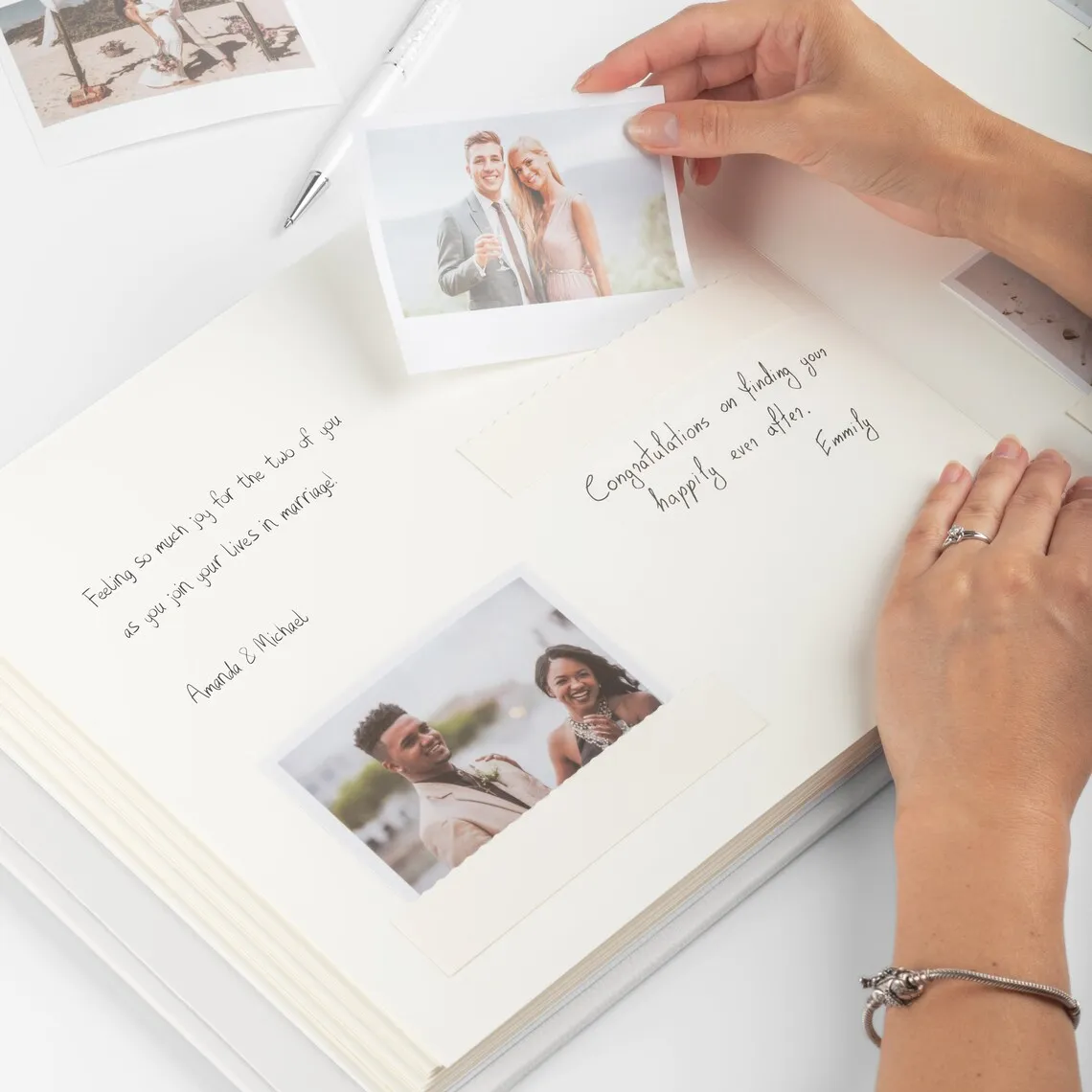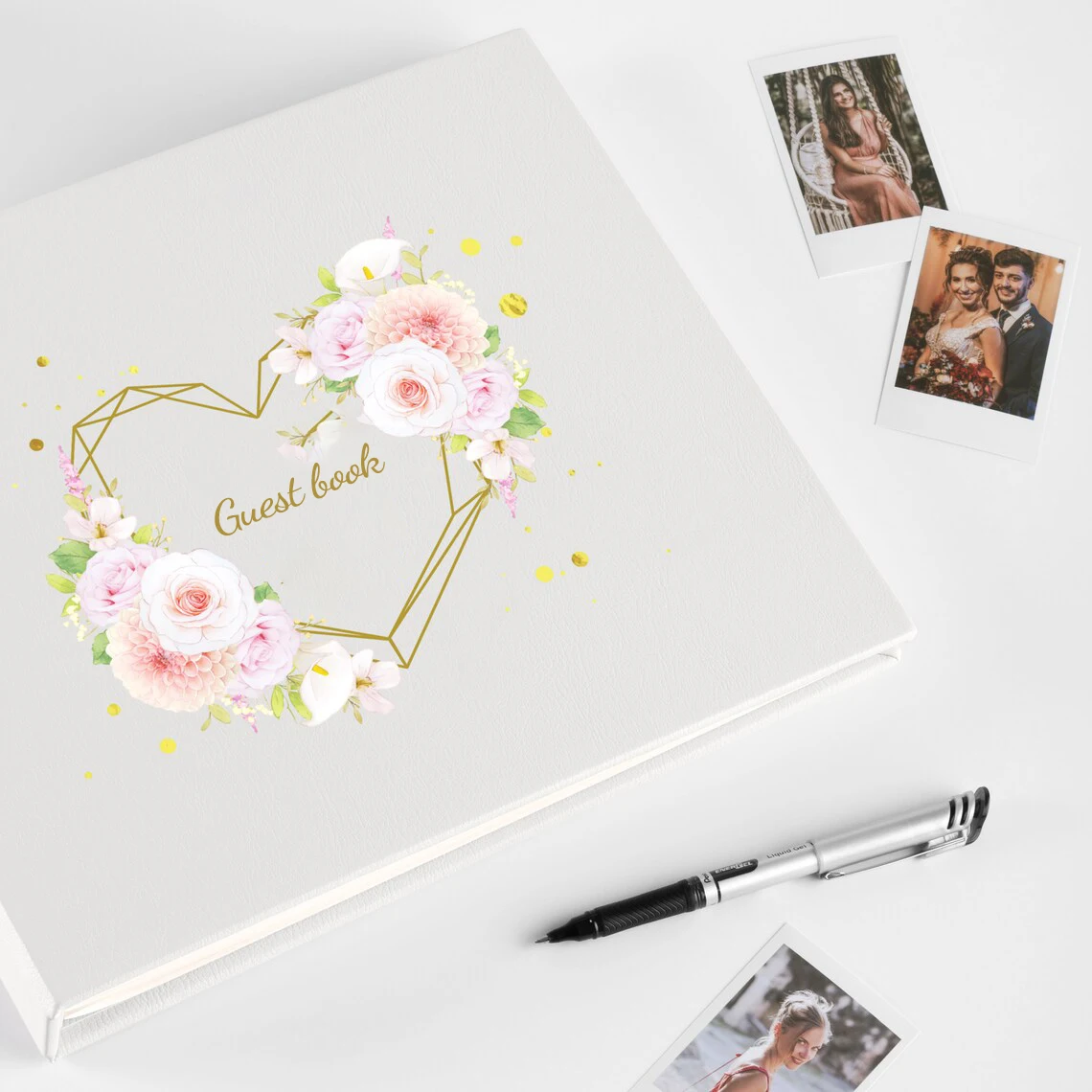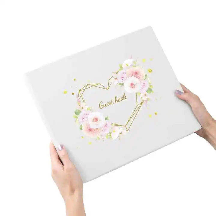 Wholesale Personalised Spiral Bound Wedding Guest Book Gold Foil Gilded Paper Fabric Bookmark Sign-In Feature