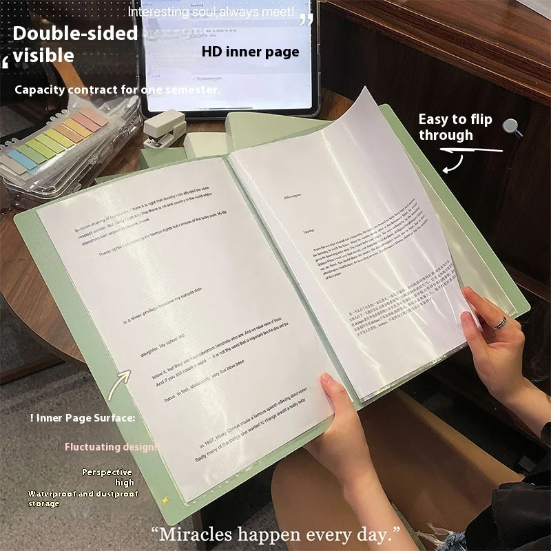 Xiaohongshu Style A4 Gradient Color Large Capacity PP (Polypropylene) Folder for Student Test Paper Storage Book Document