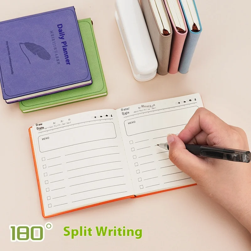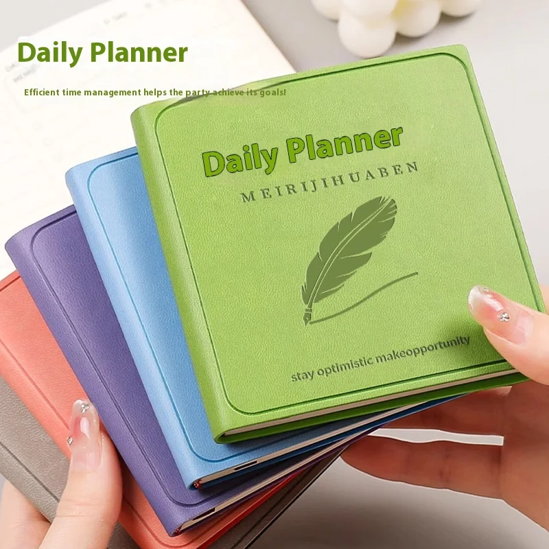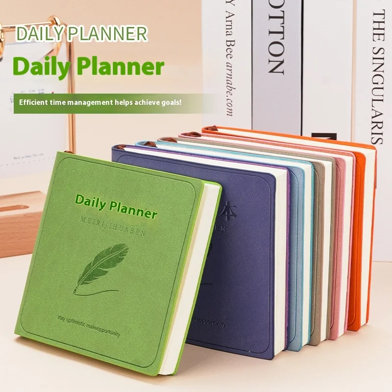 Mini A3 Leather-bound Notebook Thermal Binding Time Management Self-Discipline Check-In Daily Planner Printed Learning Schedule