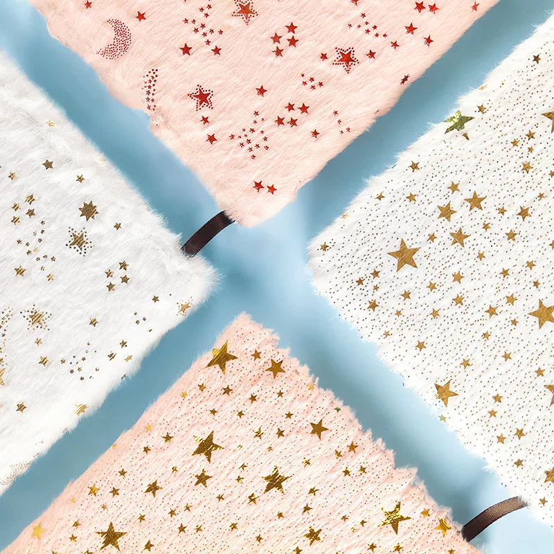 Bronzing Color Star A5 Plush Embroidery 80 Page Notebook Printed Student Cross-Border Prizes Journal Notepad for School Gift Use