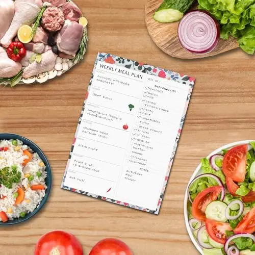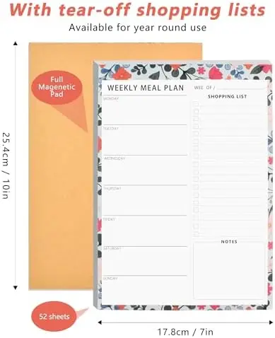 Green Floral 52 Undated Meal Planner Loose Leaf Magnet Pad for Family Weekly Meal Prep Note Fridge 1 Pack Shopping List 1 Pack