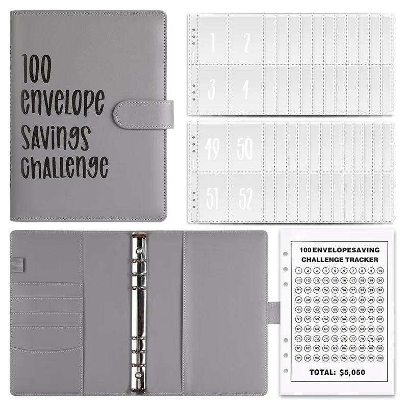 Wholesale Grey A5 A6 Pu Leather Organizer Money Saving Cash Envelopes Expense Planner Sheets Budget Binder