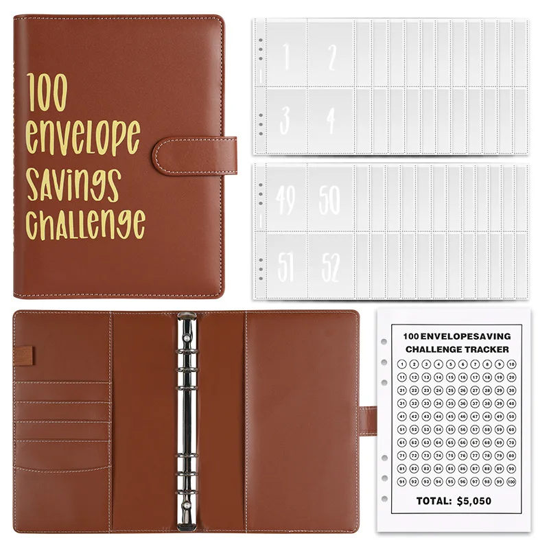 Wholesale Custom Brown A5 A6 Pu Leather Organizer Money Saving Cash Envelopes Expense Planner Sheets Budget Binder