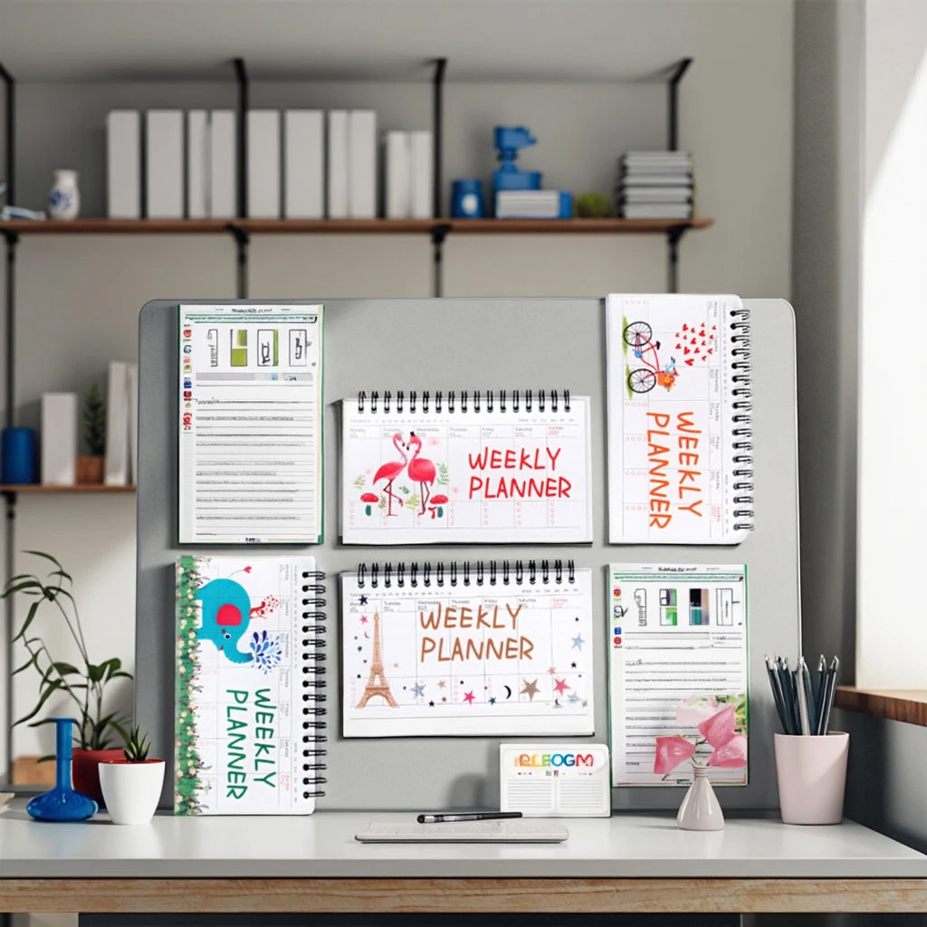 Book Student Portable Loop Flip Notebook Cartoon-Style Weekly Plan Schedule with Spiral Binding PP Cover 4 Options