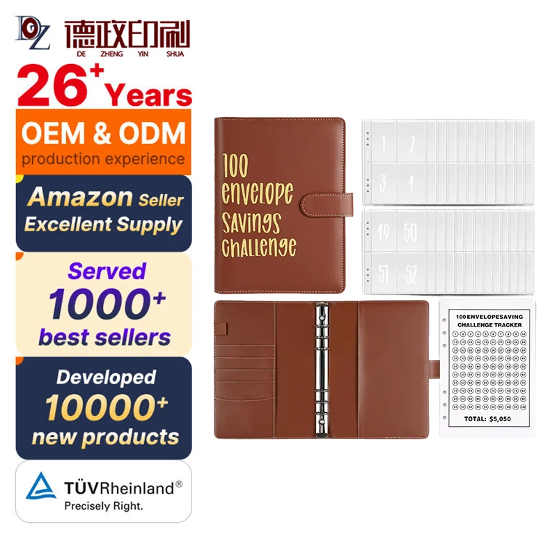 Wholesale Custom Brown A5 A6 PU Leather Cash Envelopes Expense Planner Sheets Budget Binder Organizer for Money Saving
