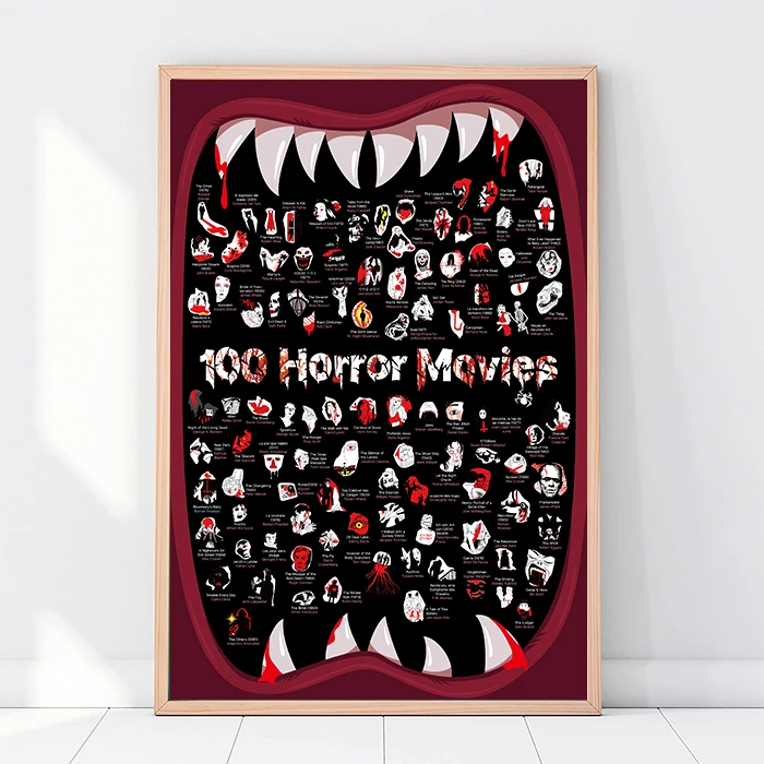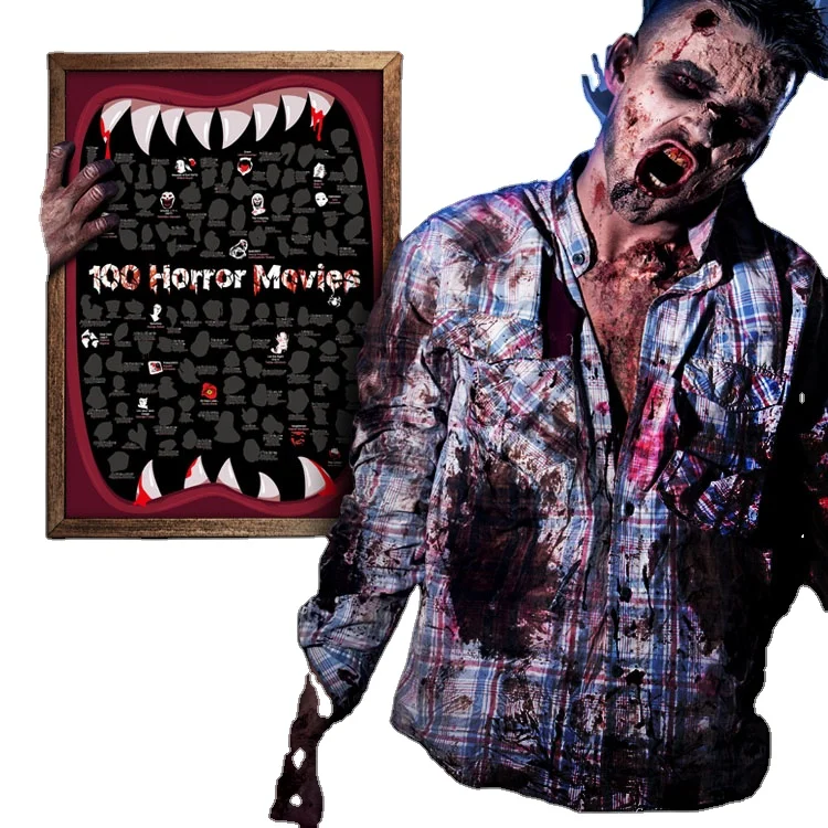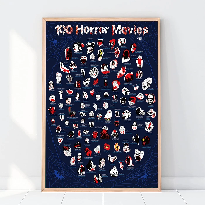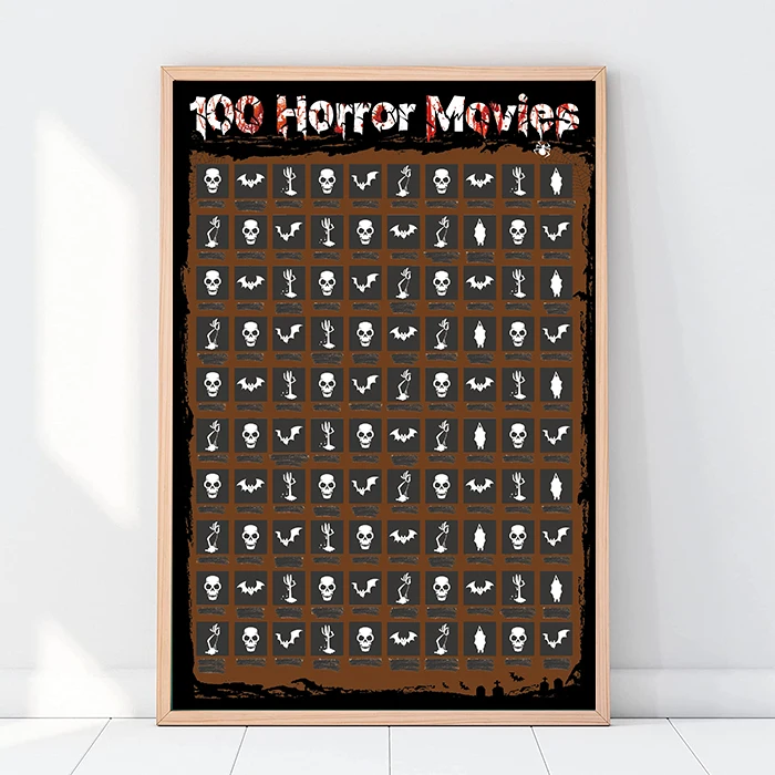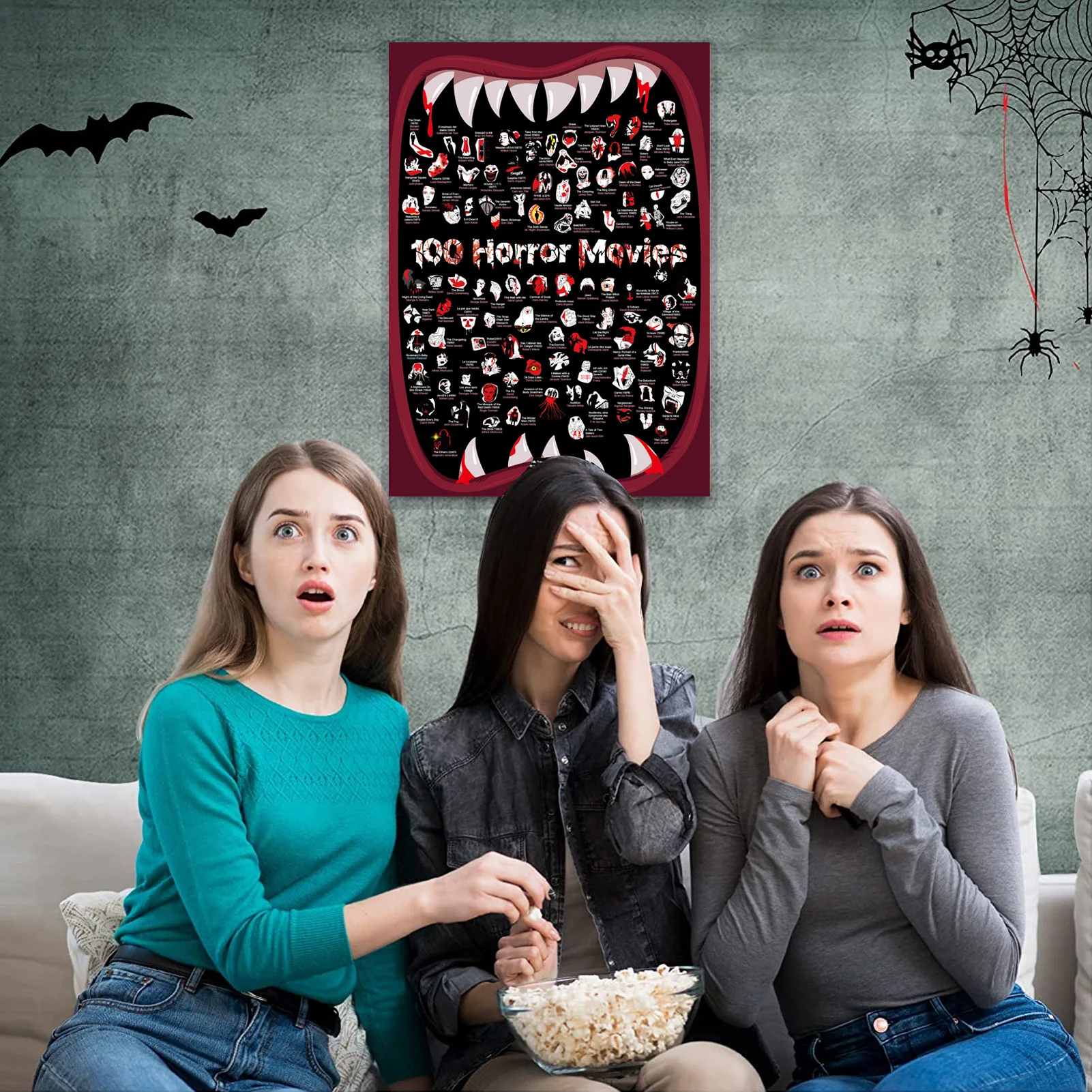 100 Horror Movies Scratch Off Poster With Scratching Tool,Bucket List Collection ,Halloween Horror Movie Gifts Fluorescent Ink