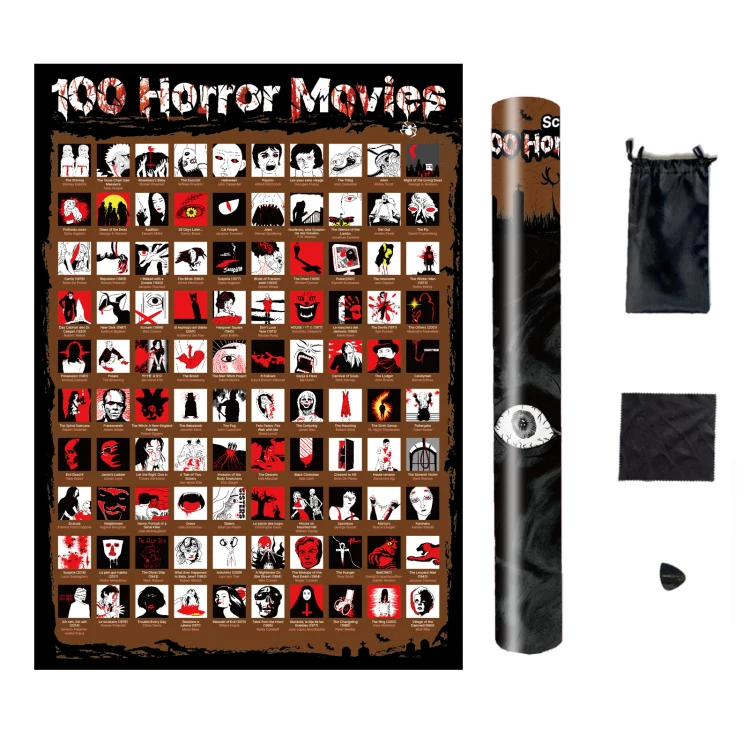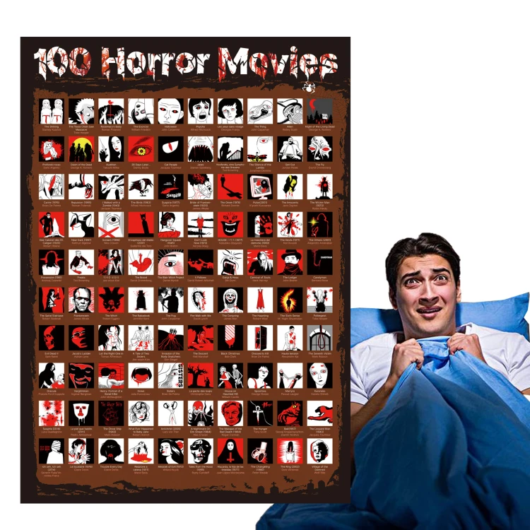 Scary Dracula Movie Ghost Film Bucket List Poster,Top 100 Horror Movies Scratch Off Poster