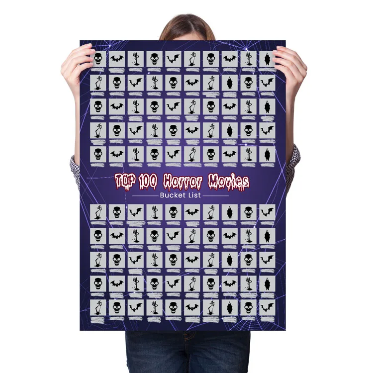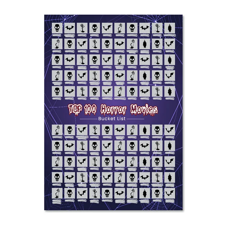 Halloween Horror Movie Gifts and Decor Bucket List Collection 100 Horror Movies Scratch Off Poster With Scratching Tool