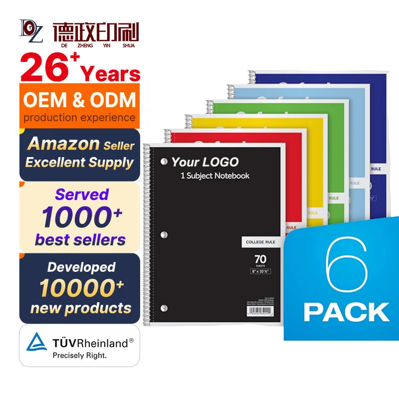 College Rule Subject Spiral-bound Notebook 70 Sheets/140 Pages 8"*10.5" B5 Size Student Study Notepad with Paper Cover