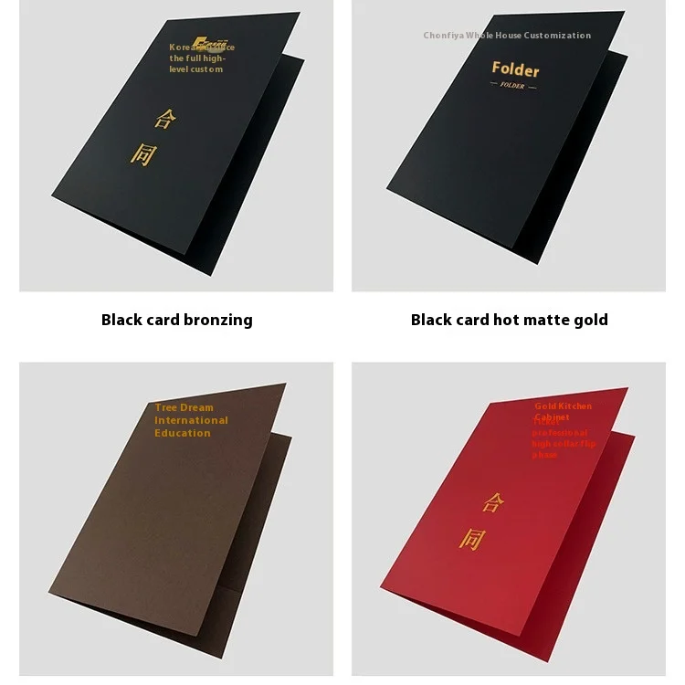 Personalized Logo Stock A4 Presentation Folder with Hot Stamping Printing A5 Insert Clip Cowhide Black Cardboard Envelope