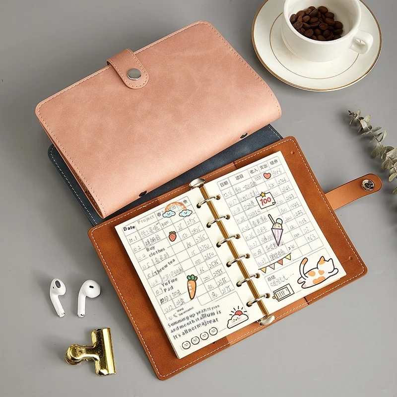 OEM ODM Portable A6 A7 Travel Planner Cute Girl Heart Soft Leather Cover College Students Small Fresh Loose Leaf Notebook