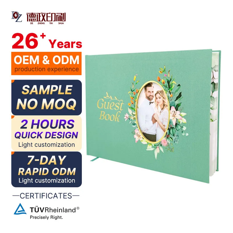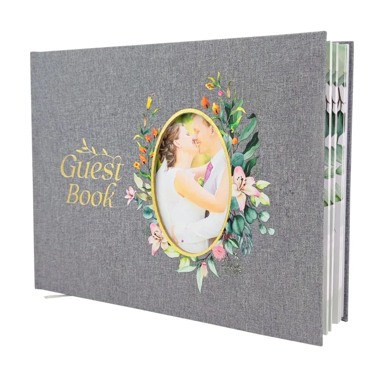 Custom Linen Cover Modern Blank Wedding Guest Book for Reception Engagement Party Bridal Shower Signatures Paper Fabric Material