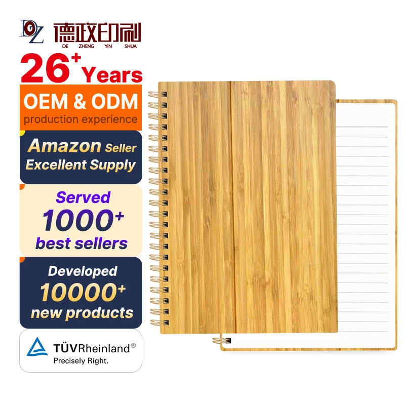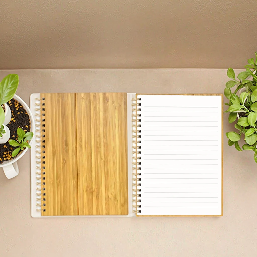 Custom Spiral Bound Notebook with PVC Bamboo Cover Hardcover Journal Lined Pages Writing Pad Diary Planner for School Office