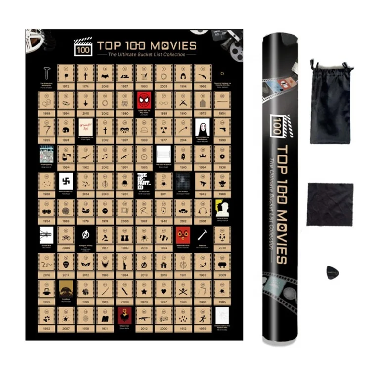 Official IMDb 100 Movies Poster 100 Movies Scratch Off Poster - Top Films of All Time Bucket List (42*59.4cm)