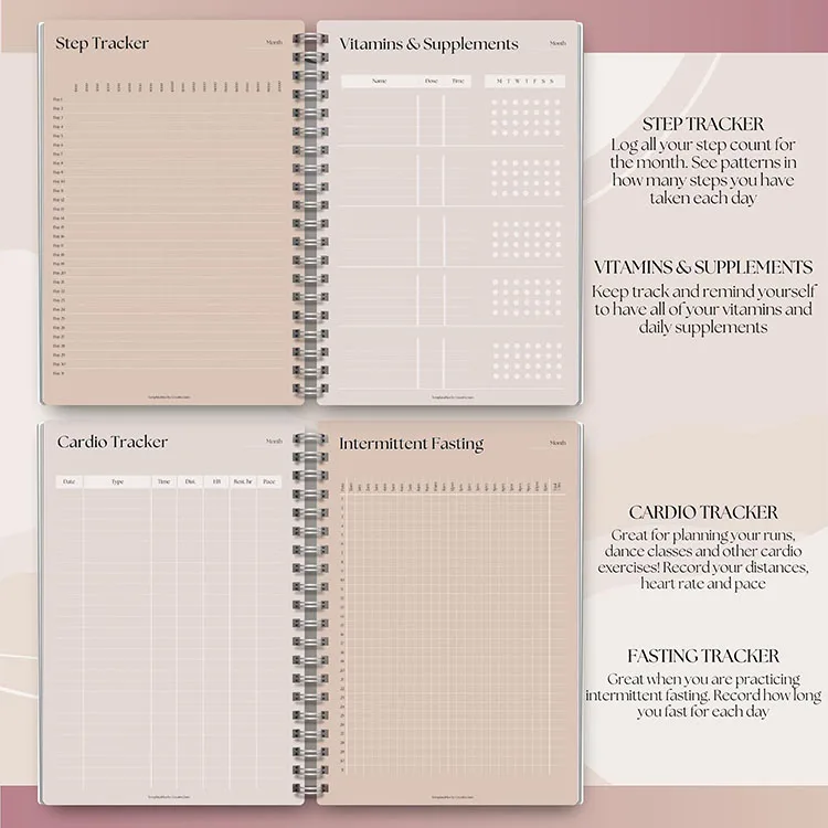Custom Personalized Fitness Gym Workout Journal Planner Notebook Diary for Training Progress Tracking Goals Meal Self Care Habit